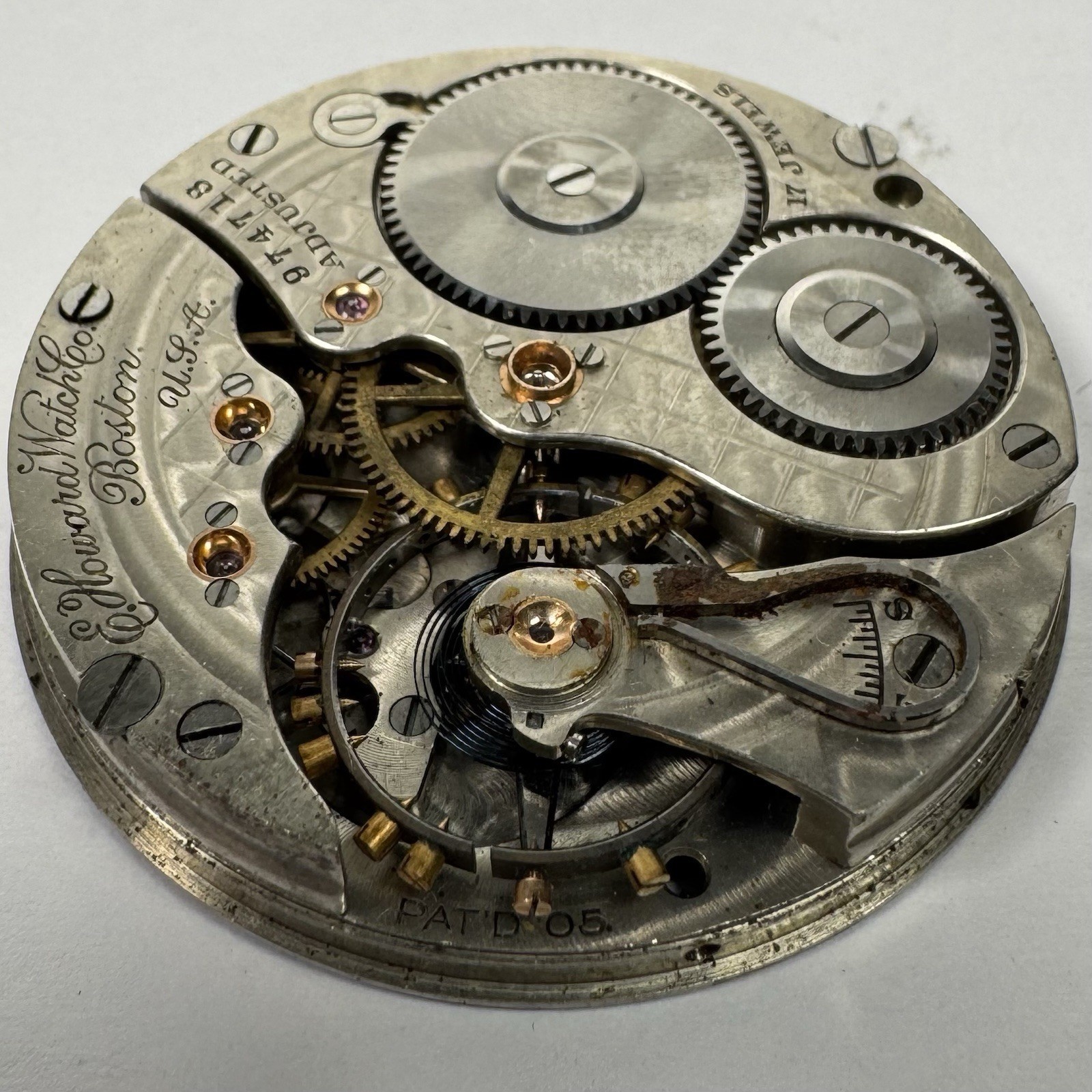 Howard Pocket Watch Movement 17 Jewels Adjusted For Parts