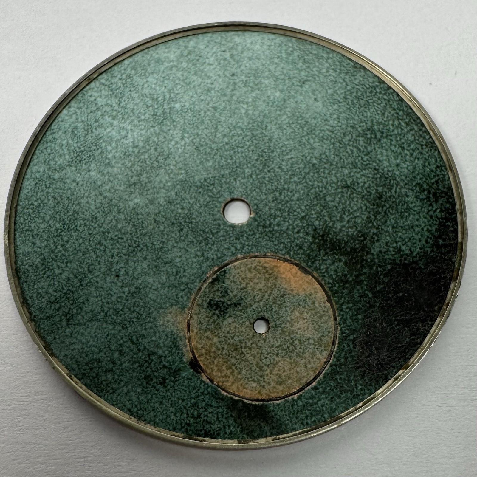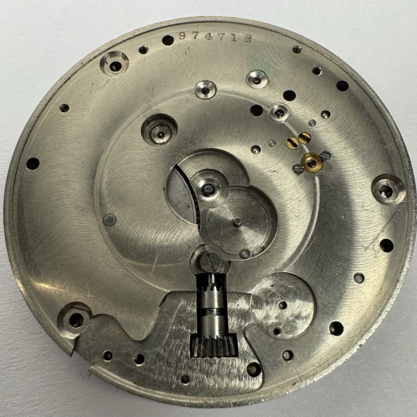 This movement is being sold for parts, not working. The dial is included and has some hairline cracks through the porcelain finish as shown. See pictures for more details.