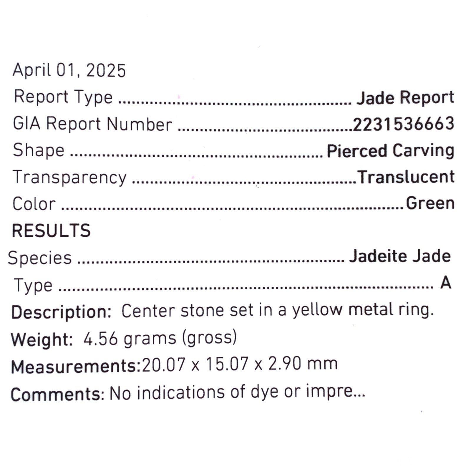 14k Yellow Gold Ming's Carved A Jadeite Jade Ring with GIA Report 6.25 (#J7416)