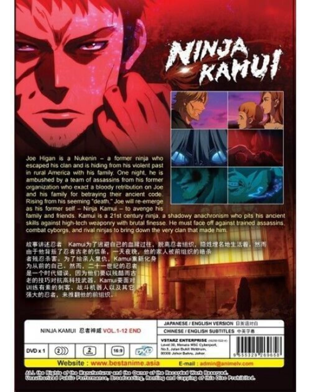 body { font-family: "Market Sans", Arial, sans-serif; } For detail of this set please view below only, and also to tell if this set has english or Japanese audio view below and check out the listing photo back side. If it shows as (Japanese / English Version means it has English audio but if it only shows Japanese Version no English Audio)All our set has at less English Subtitles if only Japanese audio. This set is all regions. NINJA KAMUI VOL.1-12 END DVD Title Name NINJA KAMUI VOL.1-12 END No of Disc 1 Disc (12 Episodes) Version English / Japanese Subtitles Chinese / English Format DVD / NTSC All Region Code (16:9) STORY : Joe Higan is a Nukenin ? a former ninja who escaped his clan and is hiding from his violent past in rural America with his family. One night, he is ambushed by a team of assassins from his former organization who exact a bloody retribution on Joe and his family for betraying their ancient code. Rising from his seeming "death," Joe will re-emerge as his former self ? Ninja Kamui ? to avenge his family and friends. Kamui is a 21st century ninja, a shadowy anachronism who pits his ancient skills against high-tech weaponry with brutal finesse. He must face off against trained assassins, combat cyborgs, and rival ninjas to bring down the very clan that made him. We Only Sell Original / Genuine DVDs. DVD All Selling Publisher Licensed In Malaysia. All DVDs Come With Hologram By Malaysia Censorship Board. All DVDs is Region FREE, Playable Worldwide. ALL PACKAGE WILL BE SHIP OUT FROM USA CA SAN DIEGO AREA OCEANSIDE, SAN MARCOS. THIS MEAN WITH IN USA YOU SHOULD RECEIVE THE PACKAGE WITH IN 4-6 BUSINESS DAY AFTER SHIP OUT. We Only Sell Original/Genuine DVDs. All DVDs I'm selling are from Licensed Publisher in Malaysia. All our products are All region so it will play any dvd player in the world Any problem please contact us first so we can speed up taking care of you.
