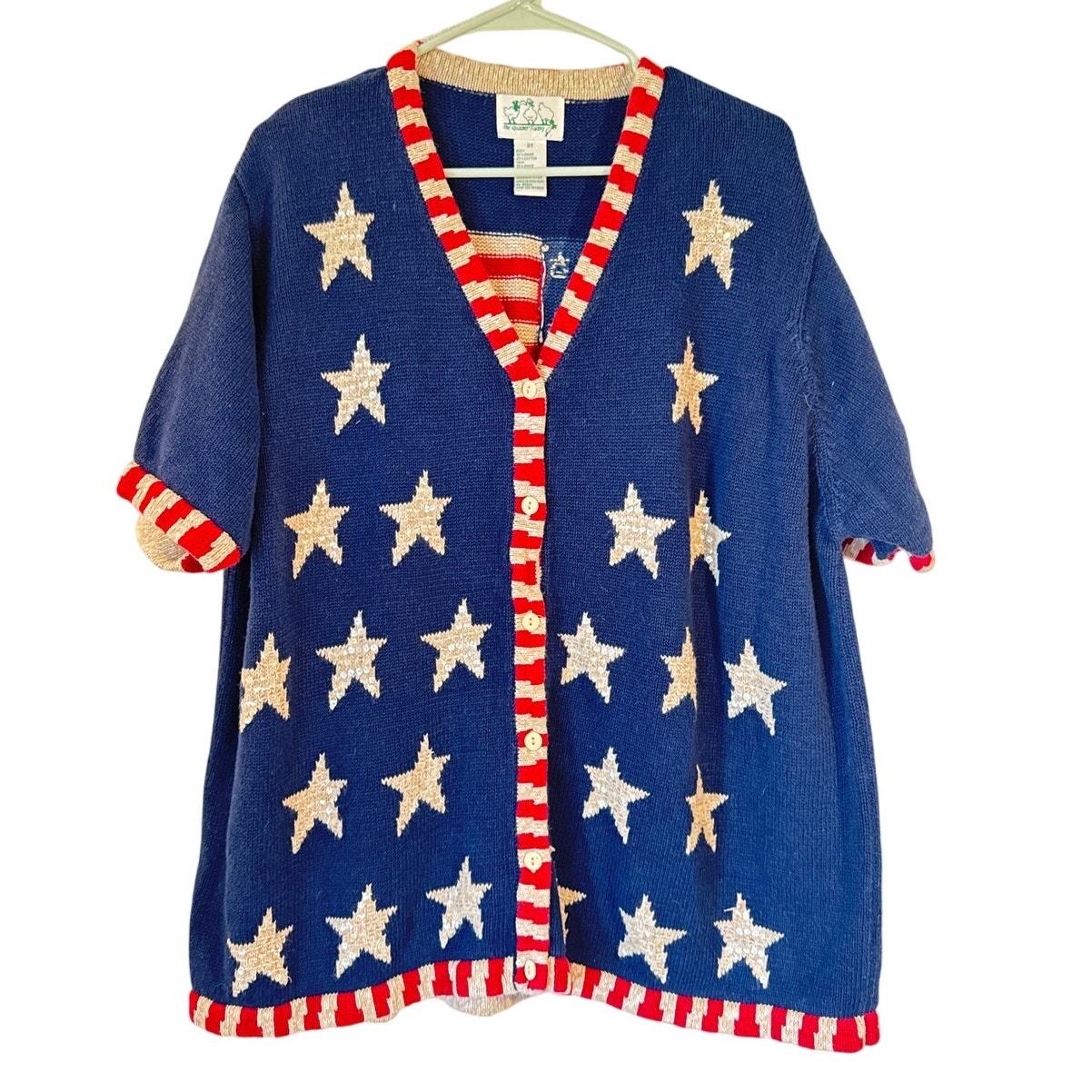 Quacker Factory Stars & Stripes Cardigan Sweater –2X