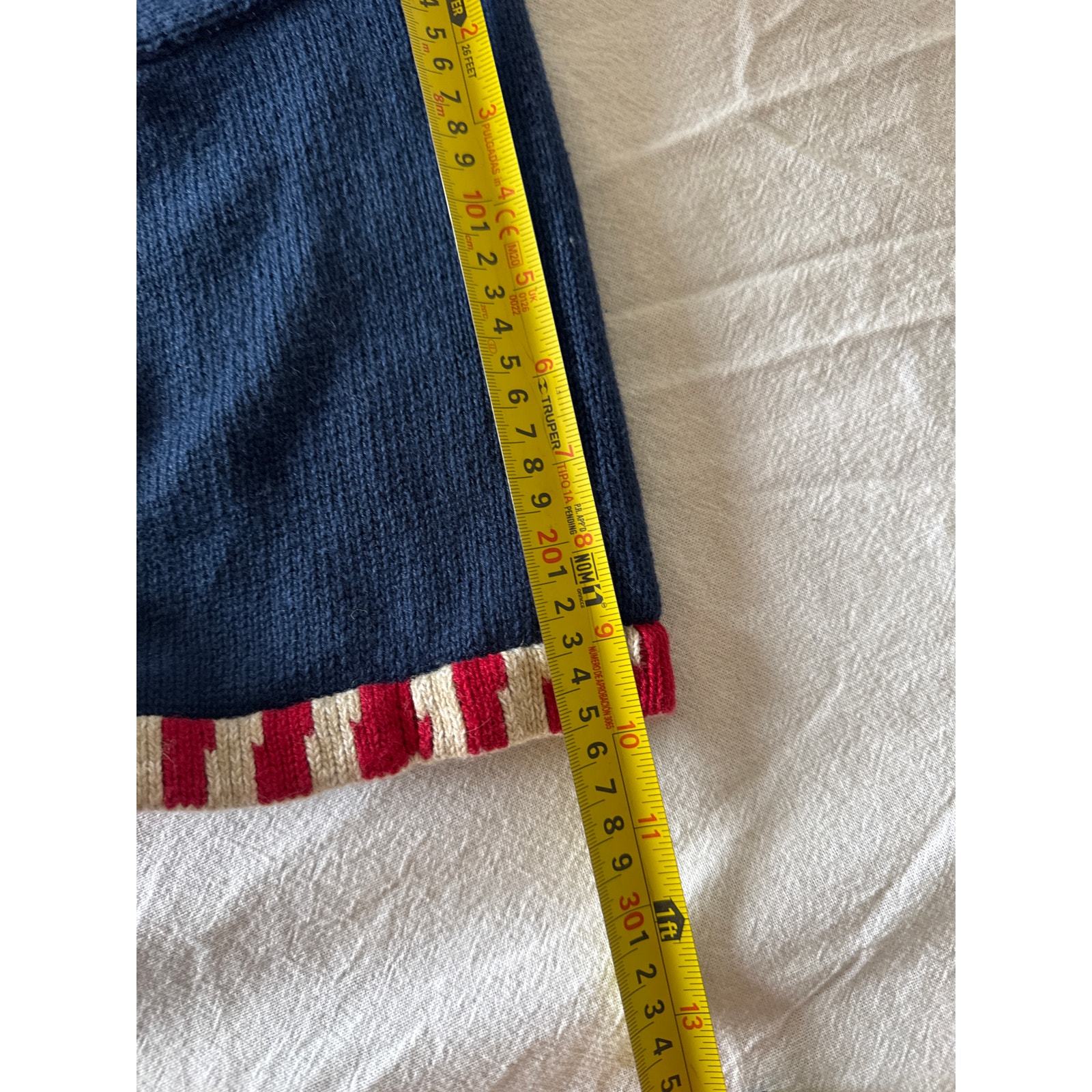 Measure against a similar sweater for best fit.