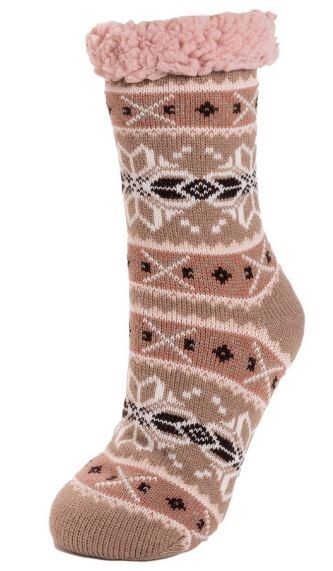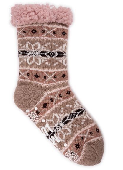 Muk Luks Rose and Brown Snowflake Cabin Socks