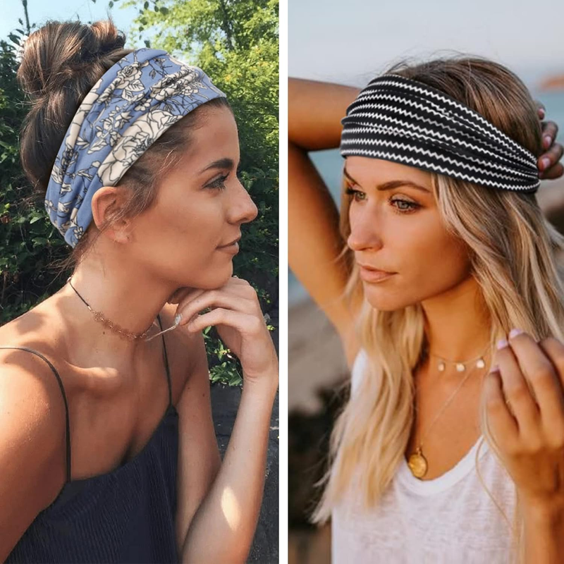 2 in 1 Versatile Boho Headbands: The womens headbands non slip are tapered to be wide on top and narrowing from the sides to the back with good stitching on the closure. The hair bandanas headbands look good with women who have short hair or long hair. You're able to wear these no slip headband for women as wide thick headbands or thin hair bands. Wide enough fit on a big forehead and cover front head hair loss.