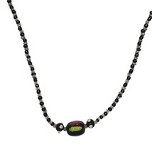 Handcrafted Black Silver Beaded Necklace With Multicolor Focal Bead Jewelry