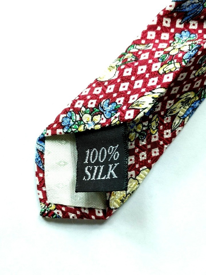 Floral White Blue Flower Red White Squares Novelty 100% Silk Tie