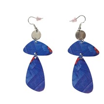 Blue Red Abstract Geometric Drop Earrings Handmade Artisan Dangle Jewelry