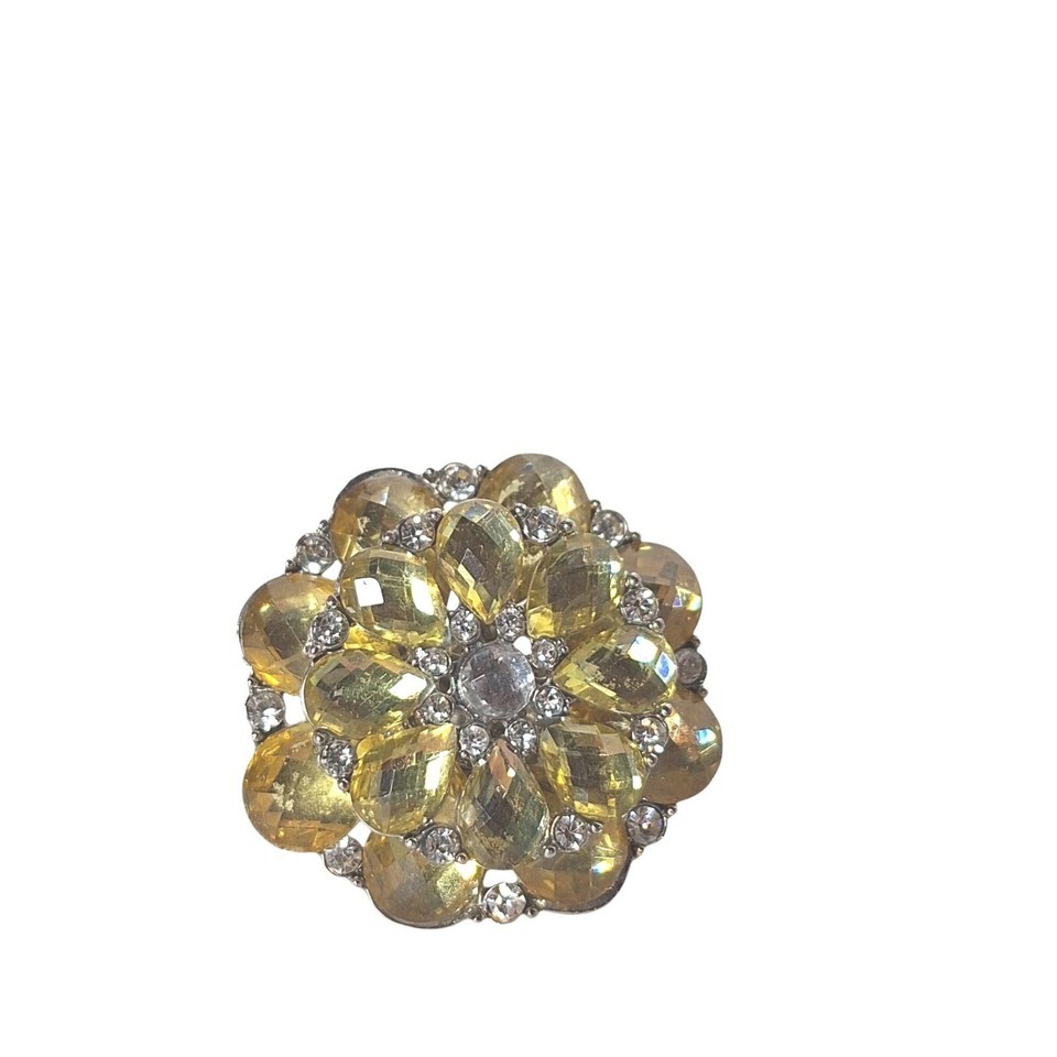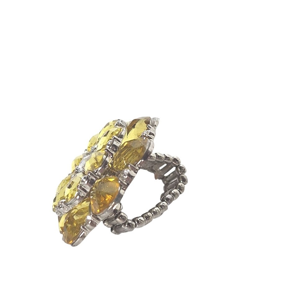 Vintage Yellow Boho Floral Daisy Shaped Gemstone Stretch Band Ring Jewelry