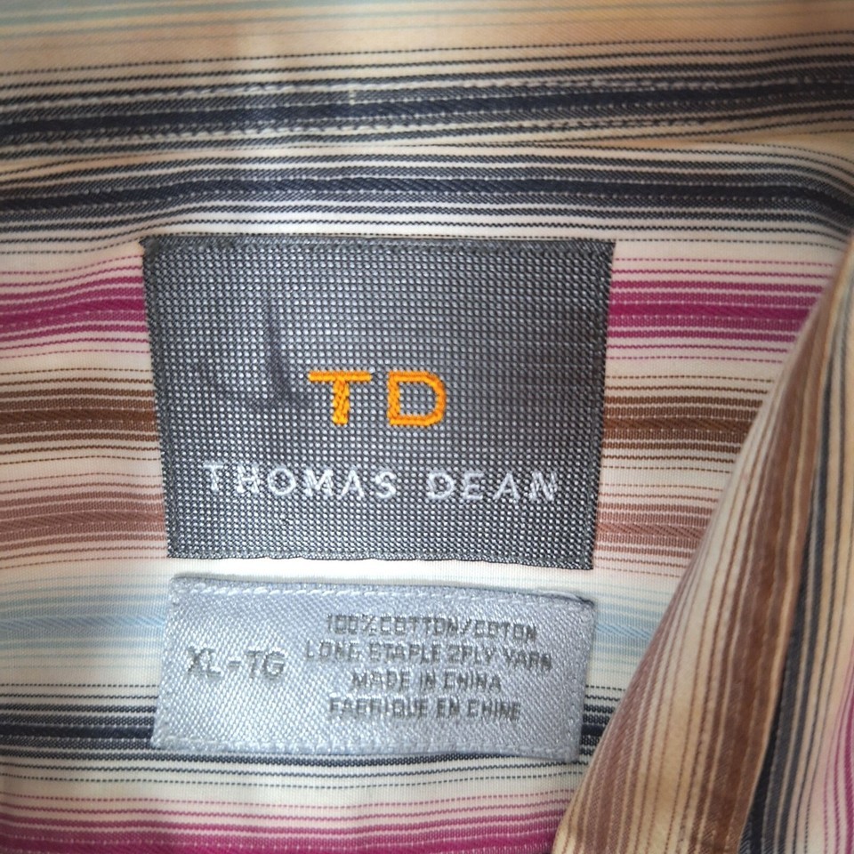 Thomas Dean Men's Button Up Shirt Size XL Multicolor Striped Long Sleeve