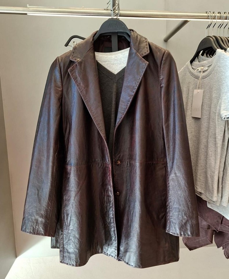 ZARA BNWT 2025. BURGUNDY LEATHER STITCHED BLAZER COAT. 5601/799/681