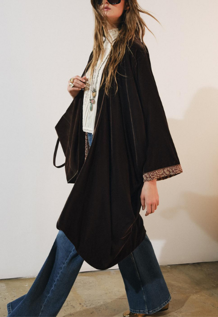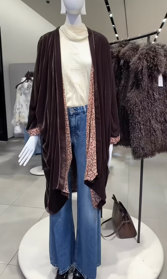 Zara Bnwt 2025. Brown Velvet Kimono Coat and 44 similar items
