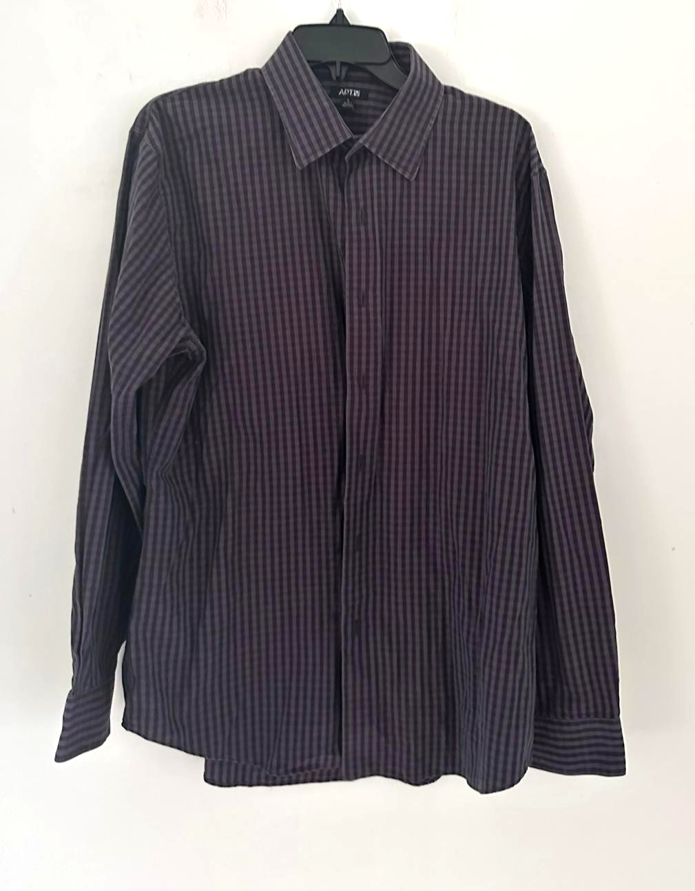 Upgrade your wardrobe with this APT. 9 Men?s Large Purple Gingham Check Shirt. Perfect for casual or dressy occasions, this long-sleeve button-up shirt combines classic gingham style with modern comfort. Its versatile design pairs well with jeans, chinos, or dress pants for a polished everyday look.