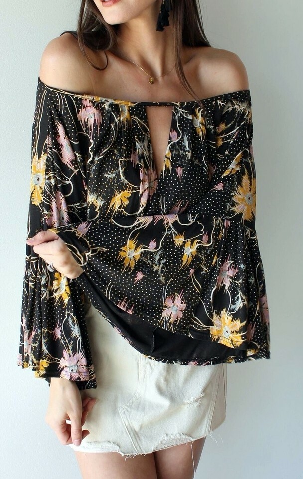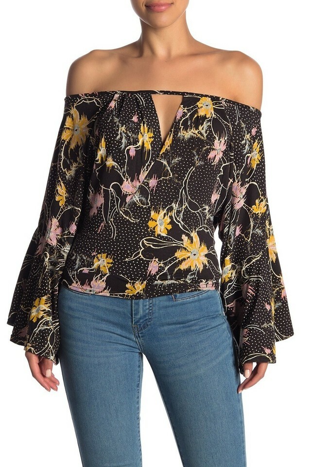 Women's Free People Last Time Printed Draped Bell-Sleeve Top