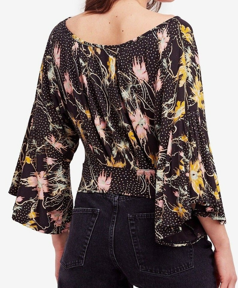 Free People Women's Last Time Printed Draped Bell-Sleeve Top, Size S