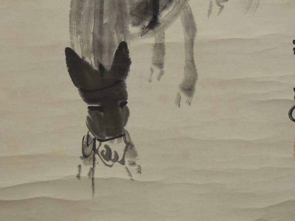 Hand Painted Watercolor 34"x18" Painting 5 Four Donkeys possibly Huang Zhou