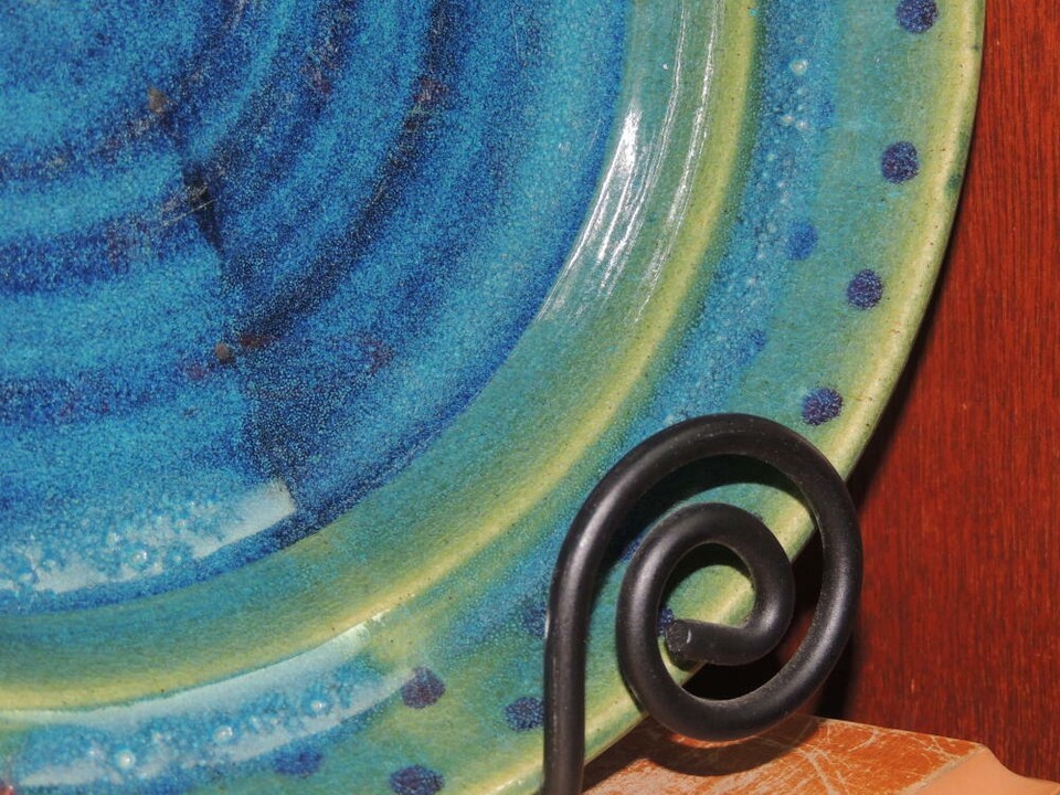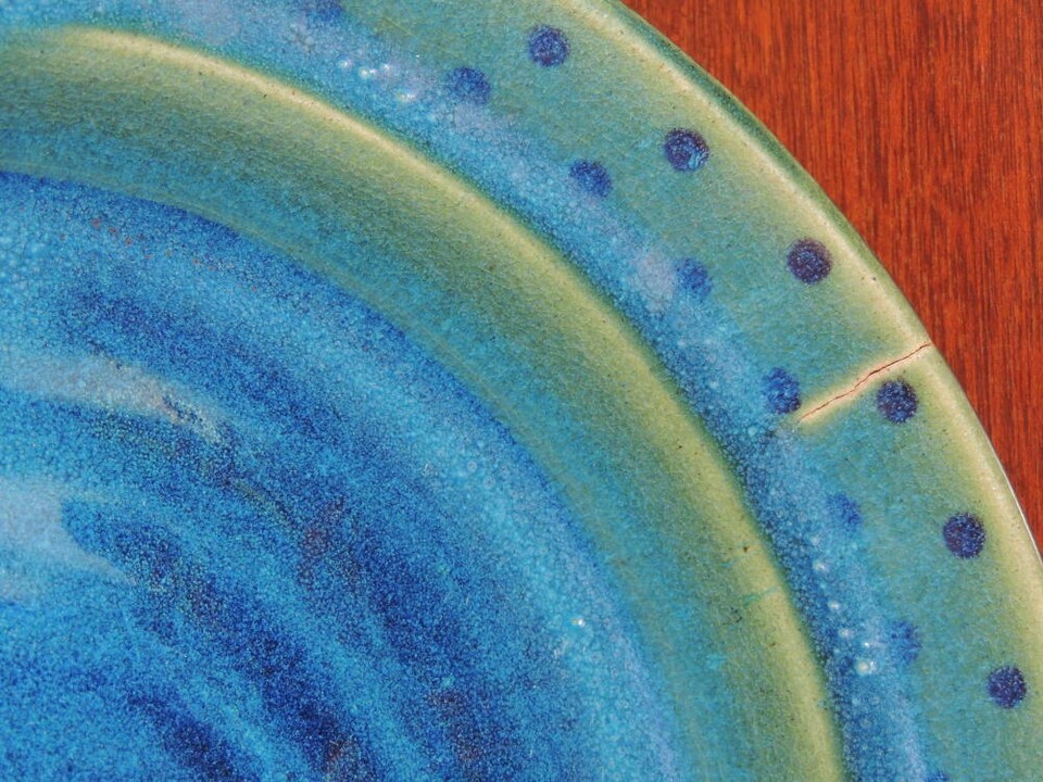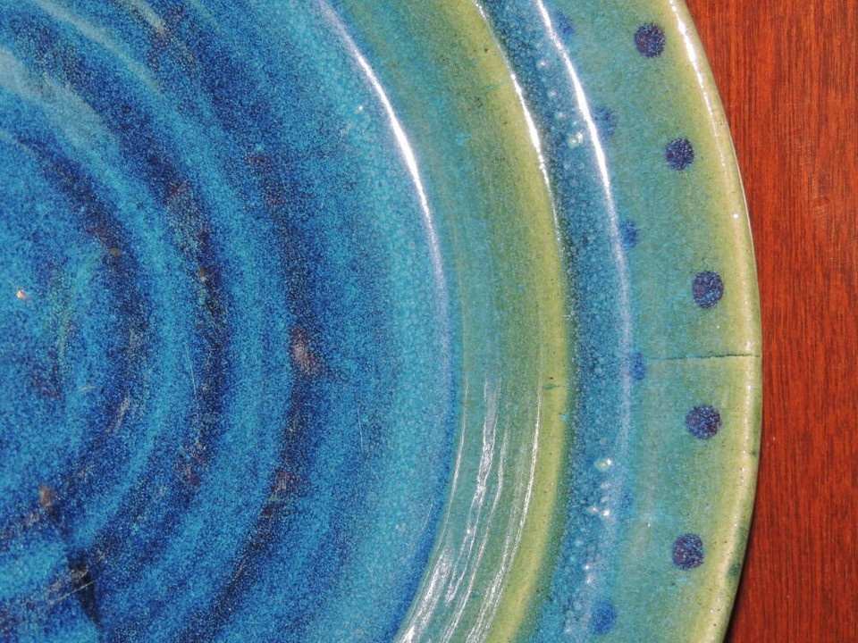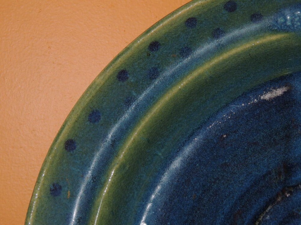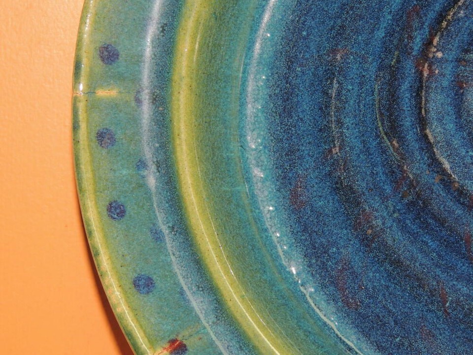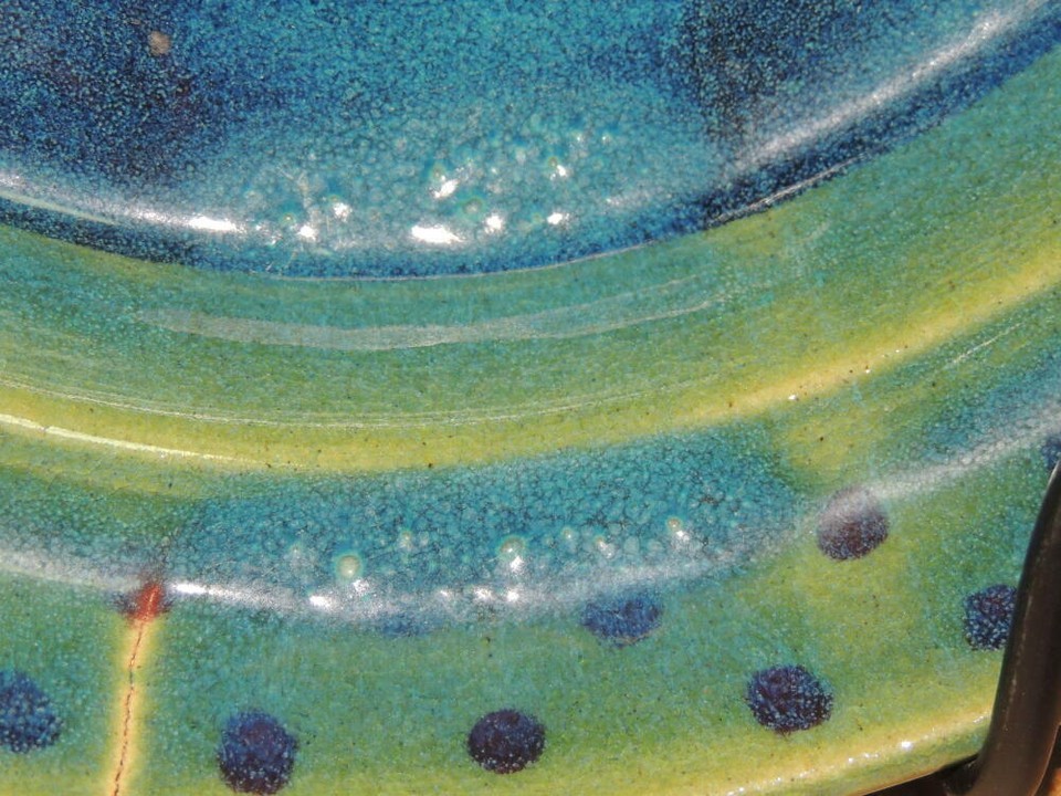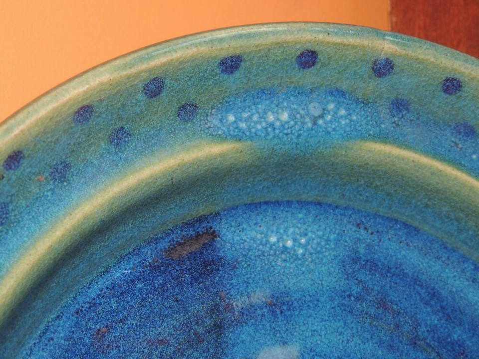 Art Pottery Bowl 13"x2.25" green blue bubble and 16 similar items