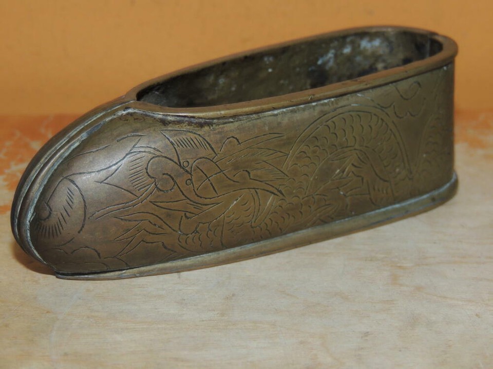 Chinese Bronze / Brass Shoe 4"+ etched and 49 similar items