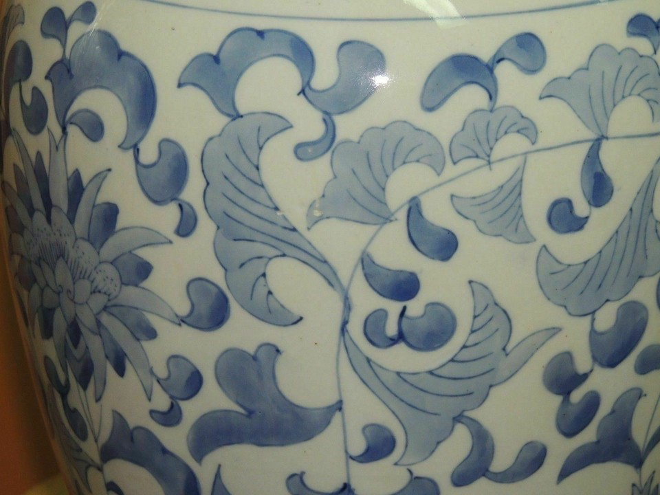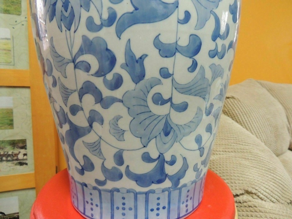 Chinese 17" Vase / Jar w/ lid Qing Qianlong drilled for lamp Antique 19th / 20th