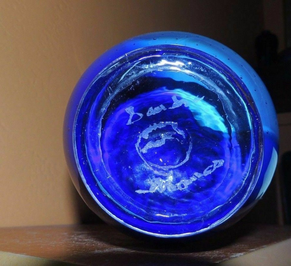 Art Glass 10" Vase Blue Hand Made Blown signed Sandy/ Sandra Thomas