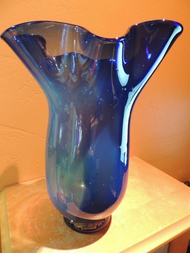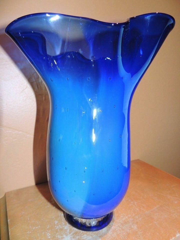 Art Glass 10" Vase Blue Hand Made Blown and 31 similar items