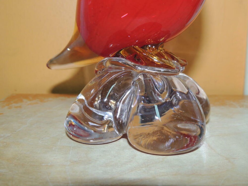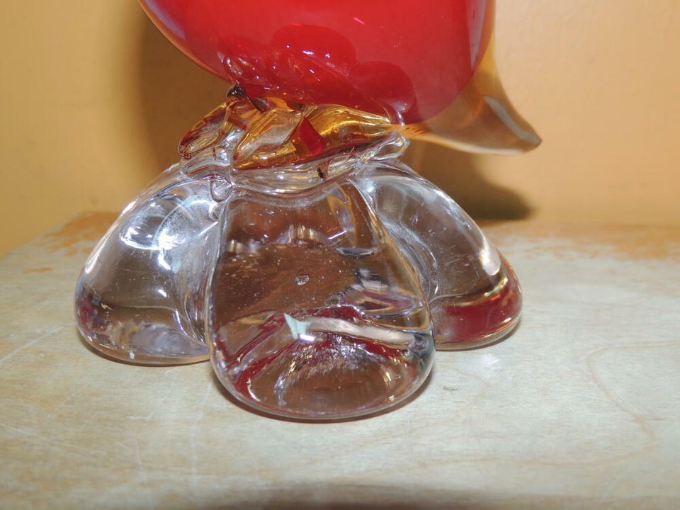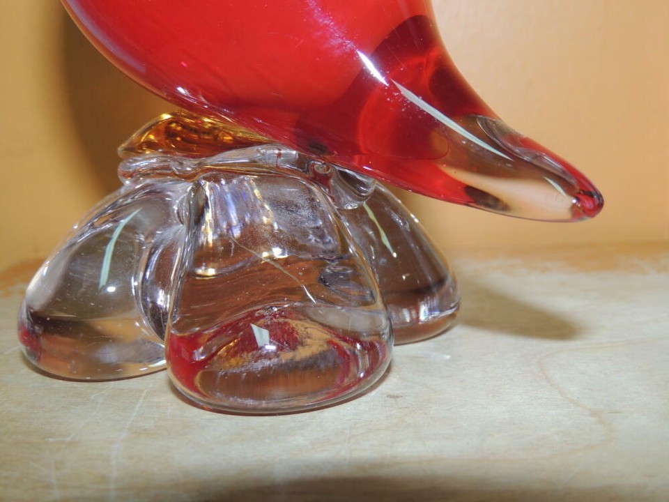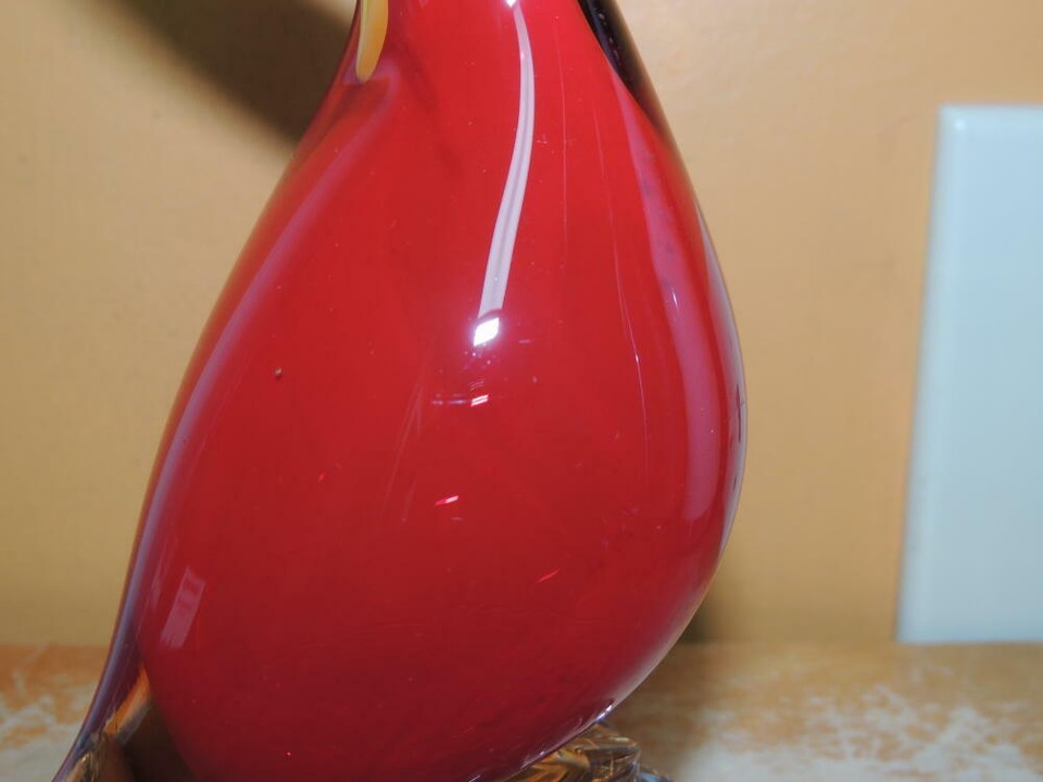 Art Glass Swan / Bird Red & Yellow 9.75" sommerso unmarked Italian Murano
