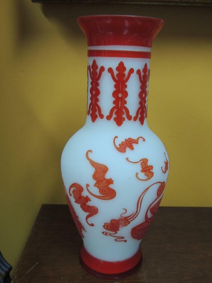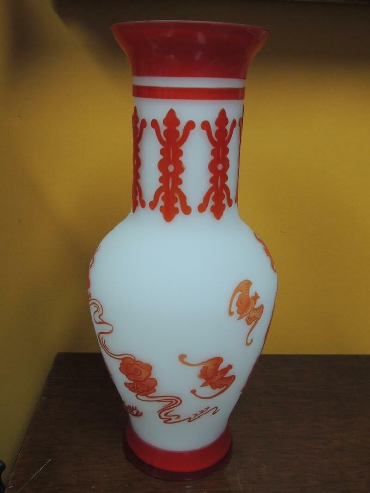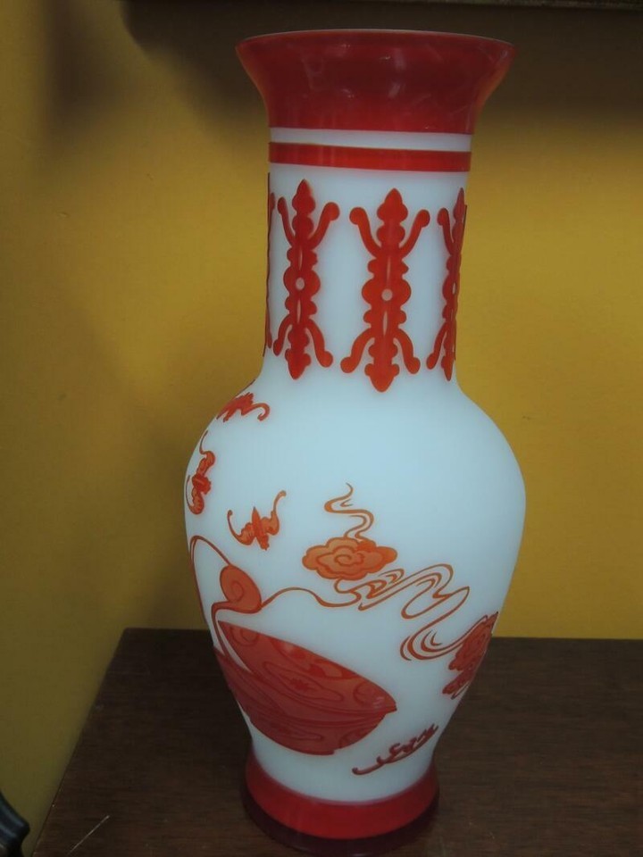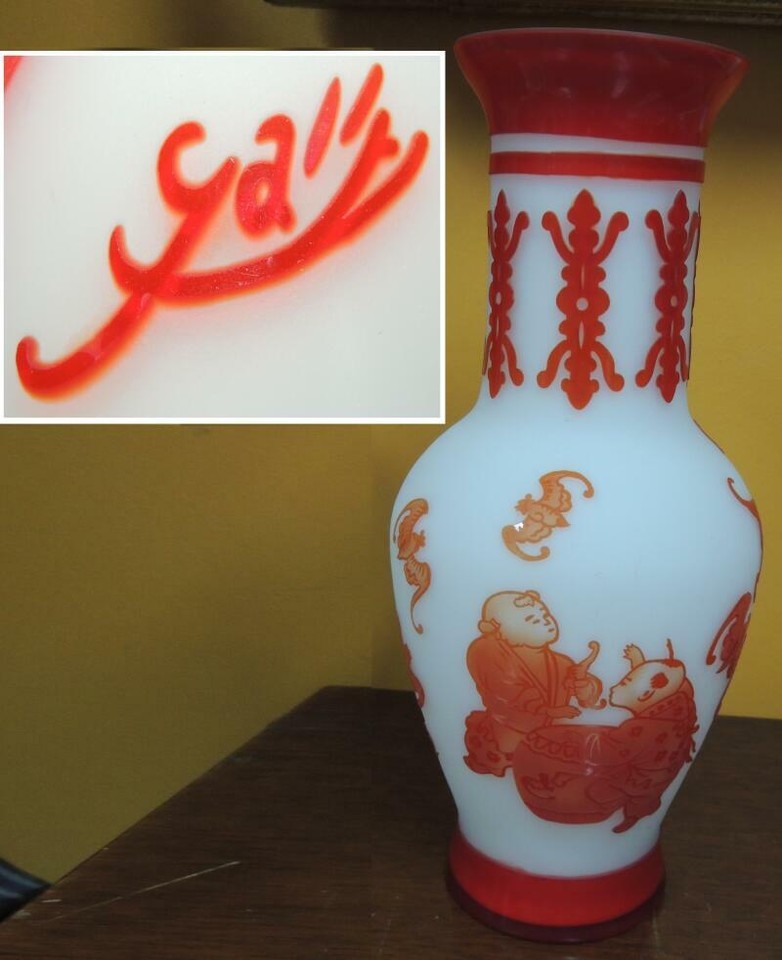 Cameo Glass Vase 12" Red Chinese Art boys and 20 similar items