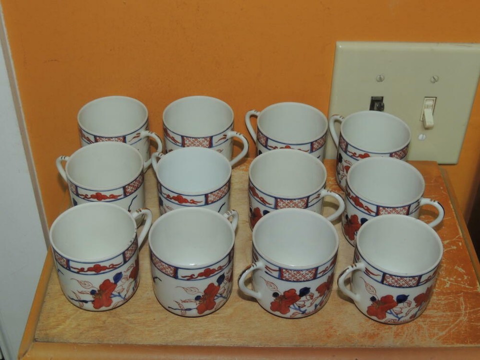 25pc Demitasse Coffee Set Eggshell Porcelain white red blue gold Qianlong Mark