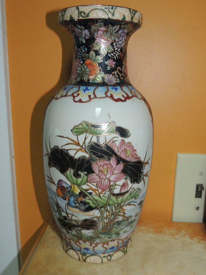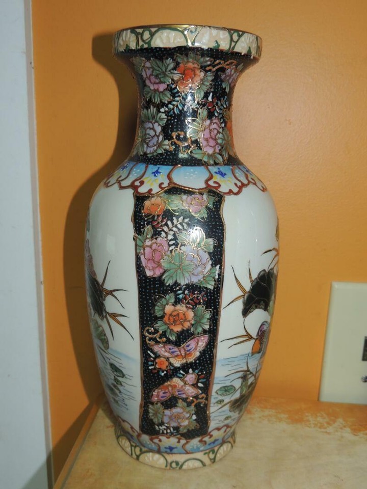 Hand Painted Vase 11.75" duck lily butterfly and similar items