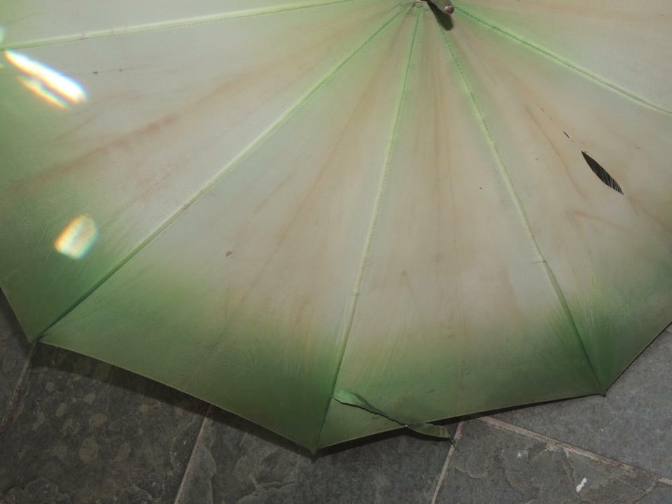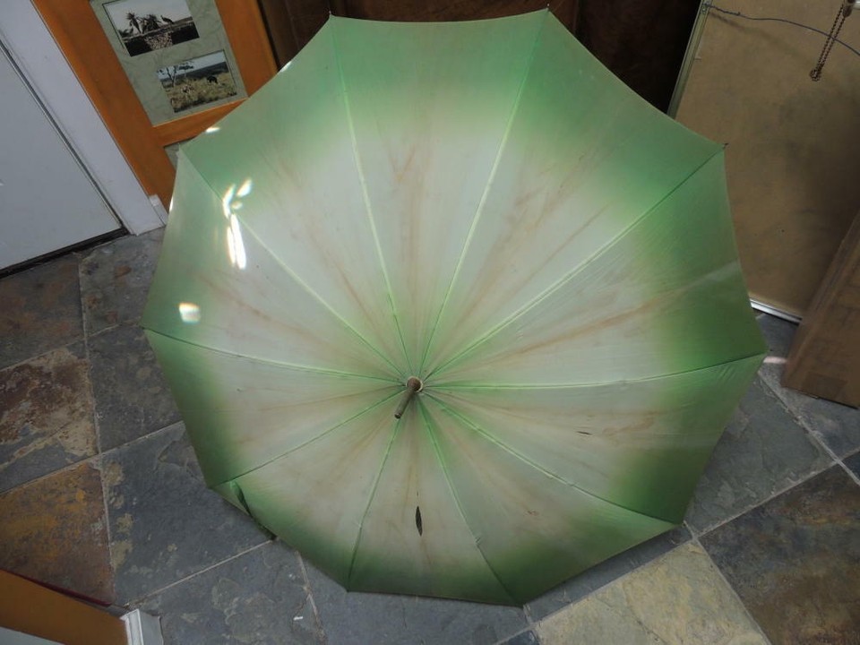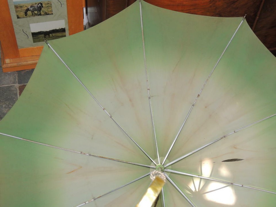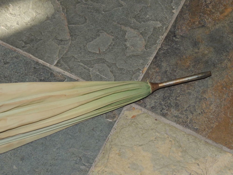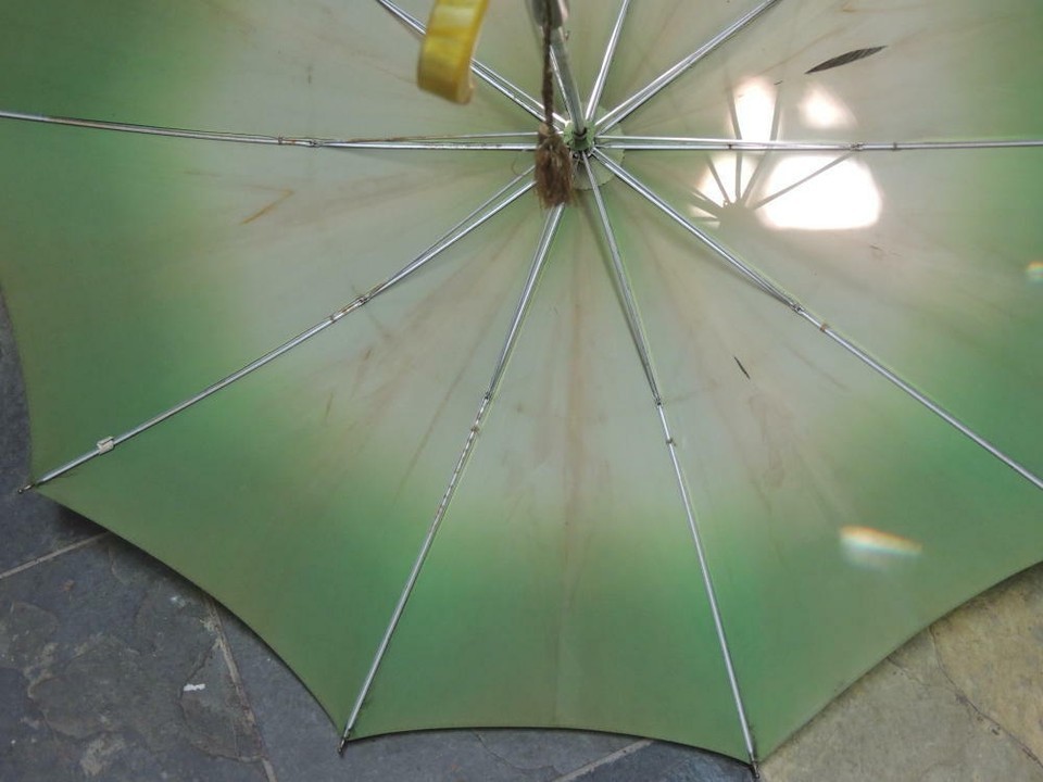 Vintage Umbrella/ Parasol 31.5"x36" Yellow Marbled Bakelite / Catalin Handle mid
