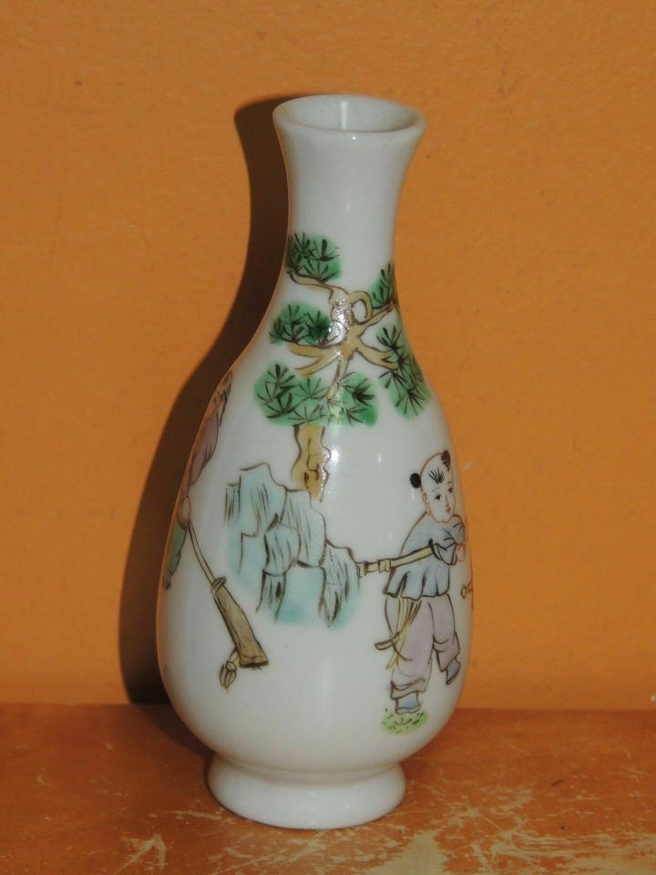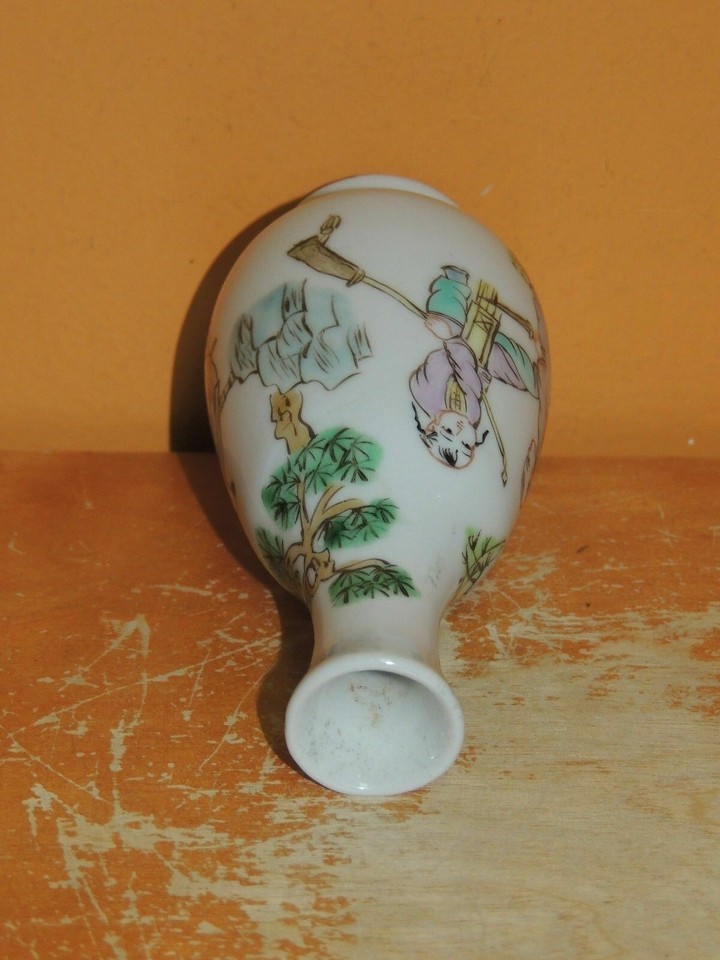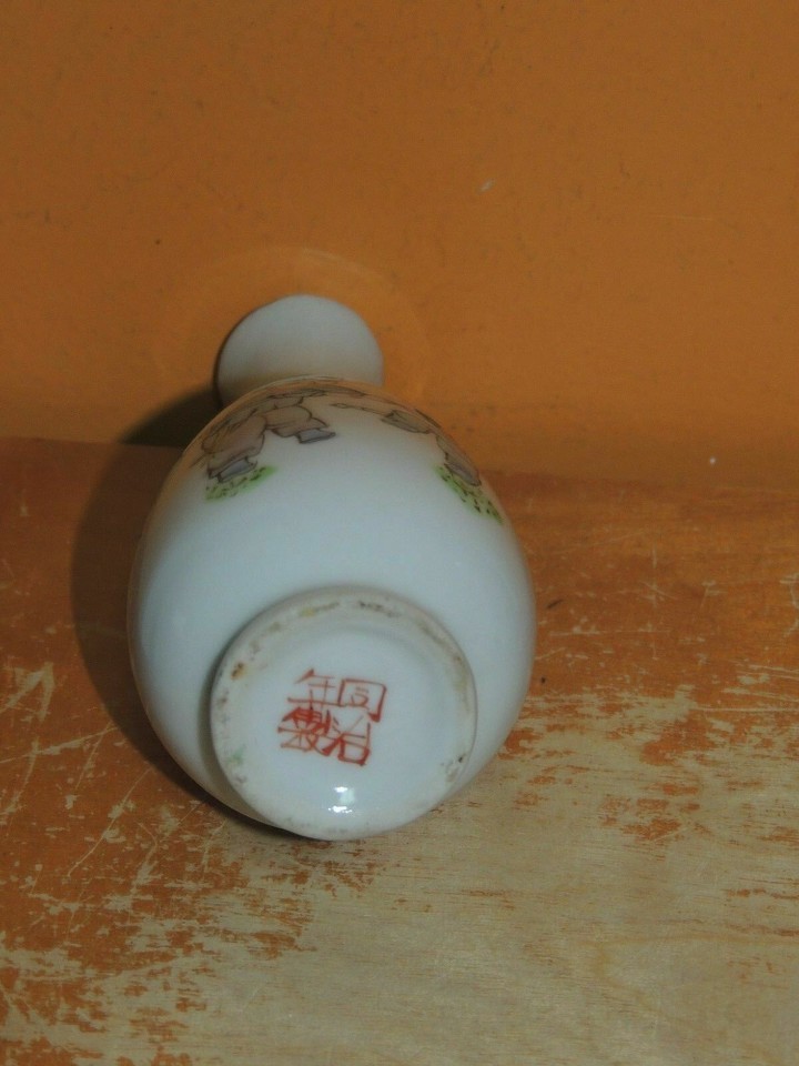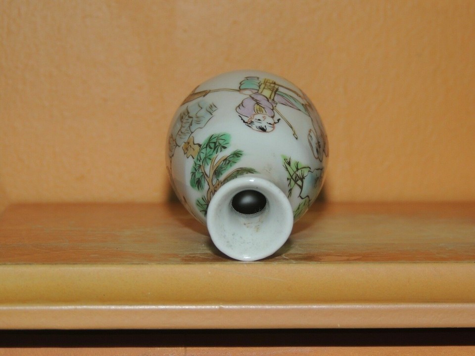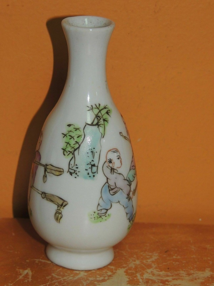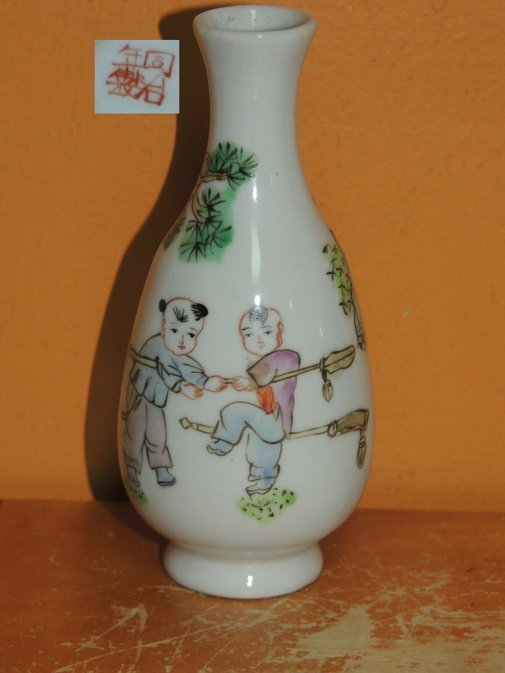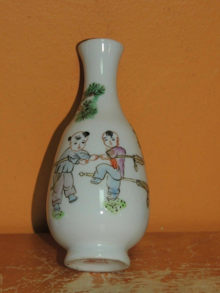 Chinese 4" Bottle Miniature Vase Qing marked hand painted children Snuff Antique