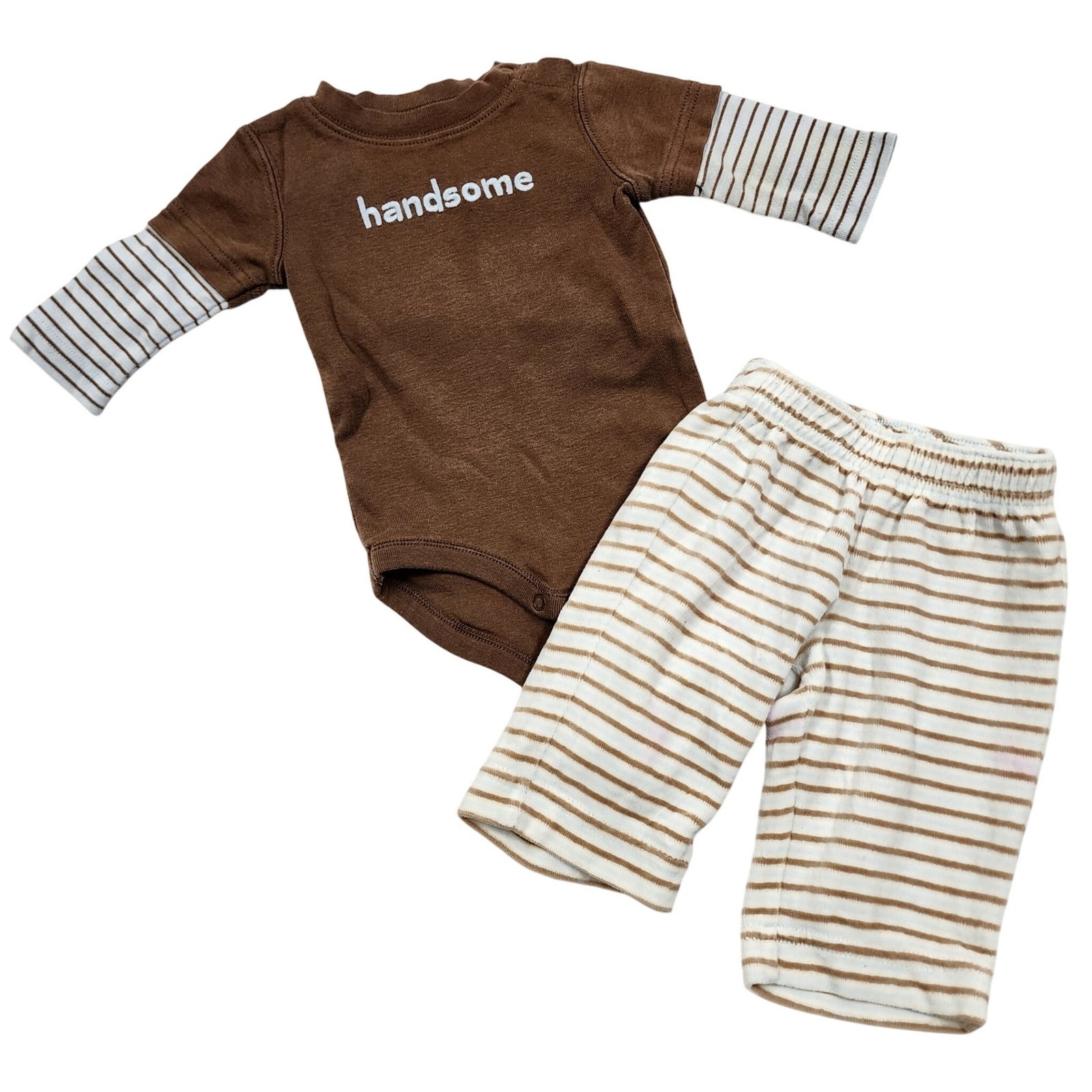 Gymboree Baby Outfit Set 0-3 Months Handsome Brown Striped Bodysuit Pants