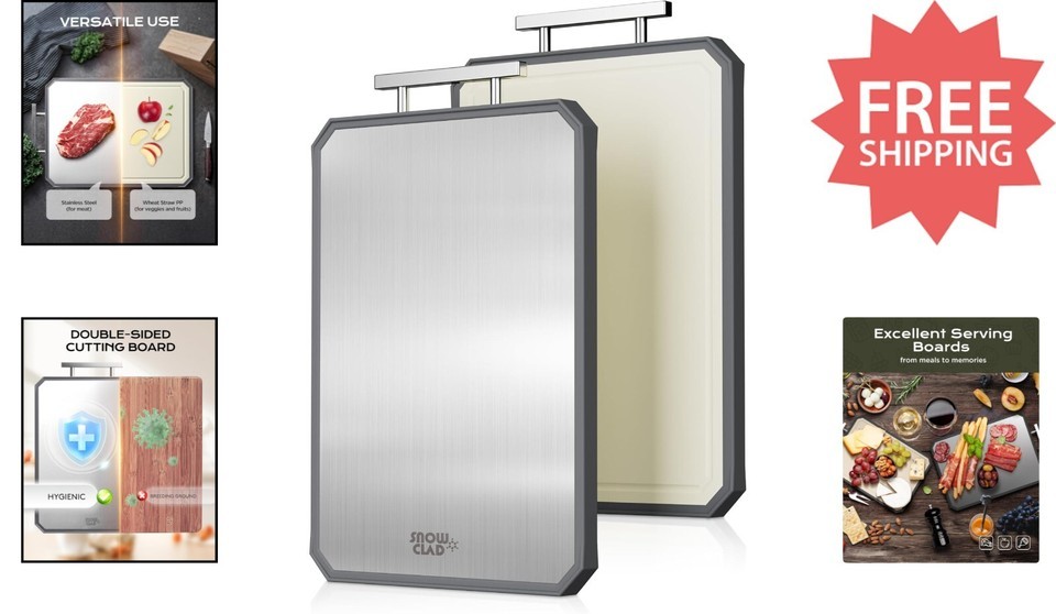 This large, dual-purpose cutting board is expertly crafted with stainless steel for meat and wheat straw PP for vegetables and fruits, offering superior durability and hygiene for your kitchen. Its juice groove simplifies cleanup by catching liquids while you cut. Both non-porous sides prevent absorption of odors and residues, maintaining freshness. Featuring a secure stainless steel handle, it ensures safe handling and easy storage. Each board undergoes thorough quality inspection, with outstanding customer service and a satisfaction guarantee. To ensure fast and reliable delivery, we work with multiple fulfillment partners and suppliers. Depending on availability and location, your order may ship from different warehouses or arrive in packaging that varies from item to item. Tracking details are typically provided shortly after shipment, and customer satisfaction remains our top priority. Please note that due to carrier policies and regional regulations, certain items may not be eligible for delivery to specific states or territories.