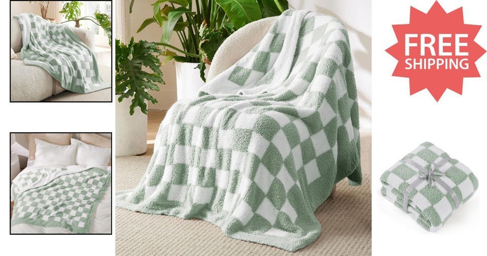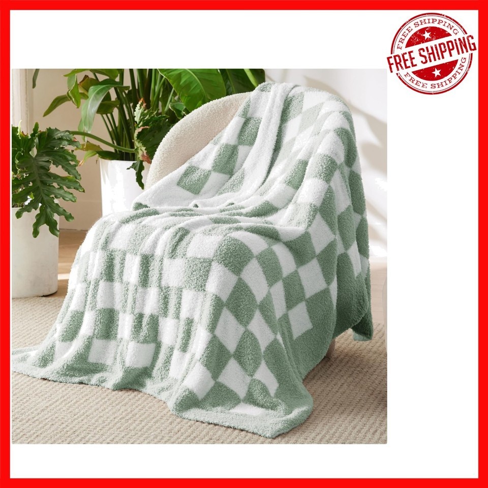 50x60 Checkered Throw Blanket - Fluffy, Cozy & Perfect for Travel or Home