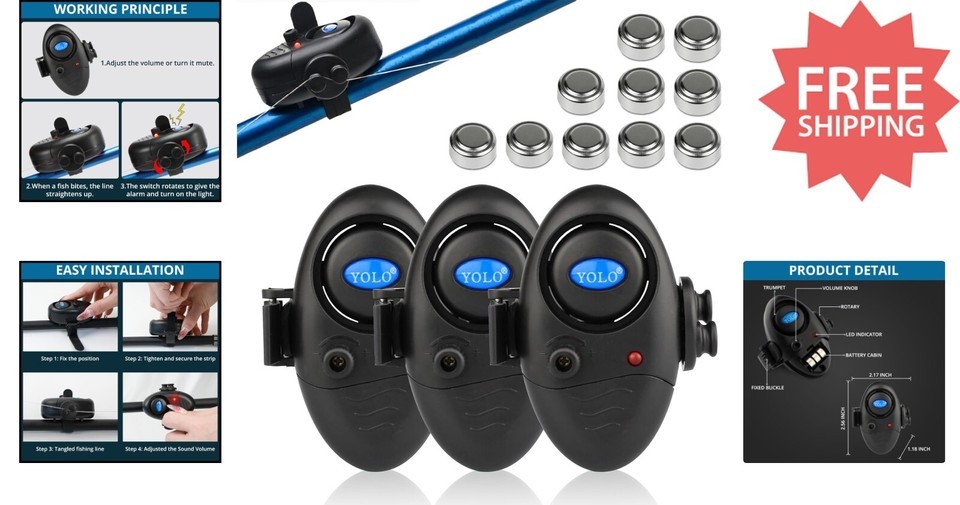 Bonus 10 Batteries, 3 Pack Fishing Bite Alarm |