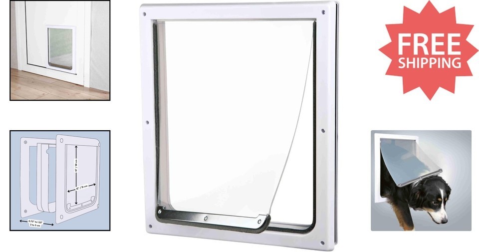 Flexible Flap 2-Way Locking Dog Door for Medium to XL Pets - Easy Install, White