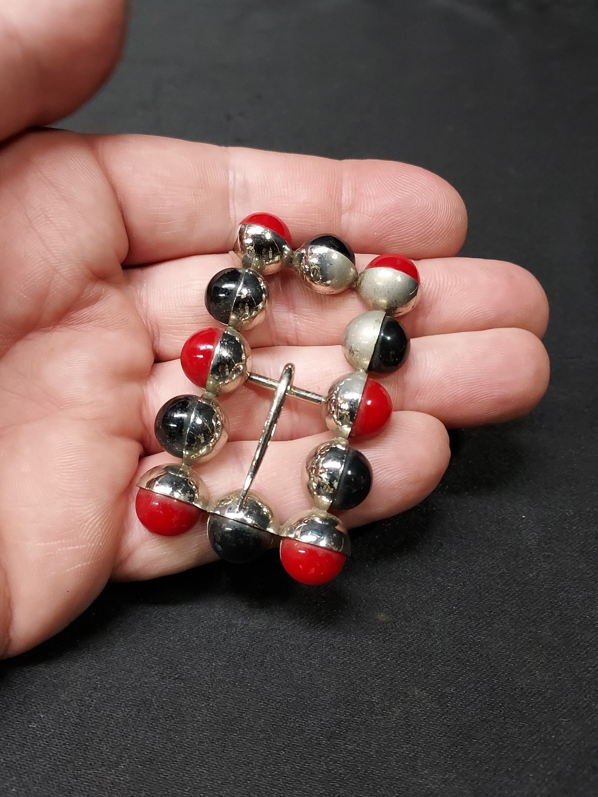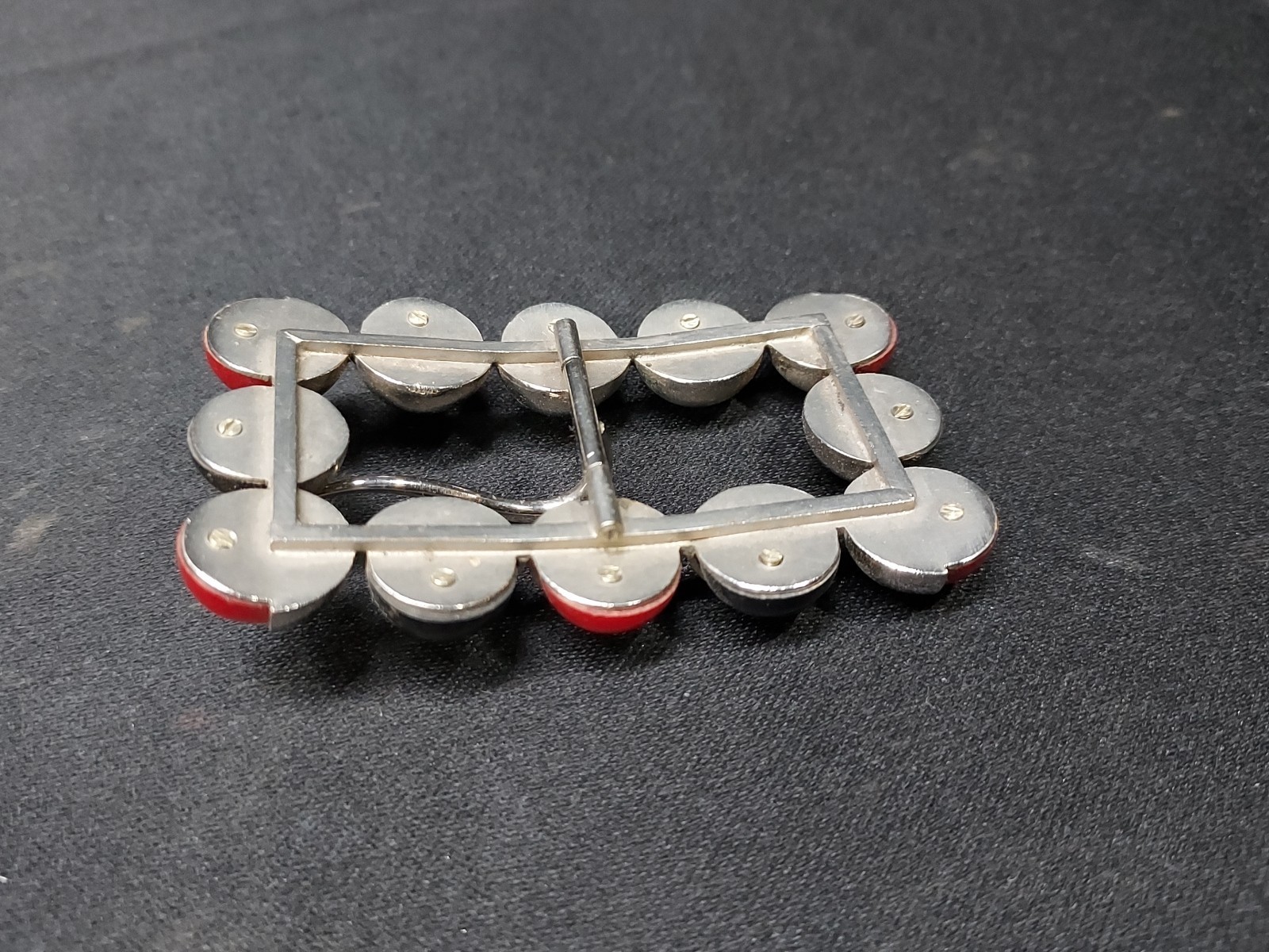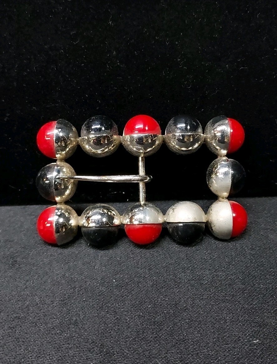 Mid Century Modern Belt buckle Red Black Chrome Art Deco