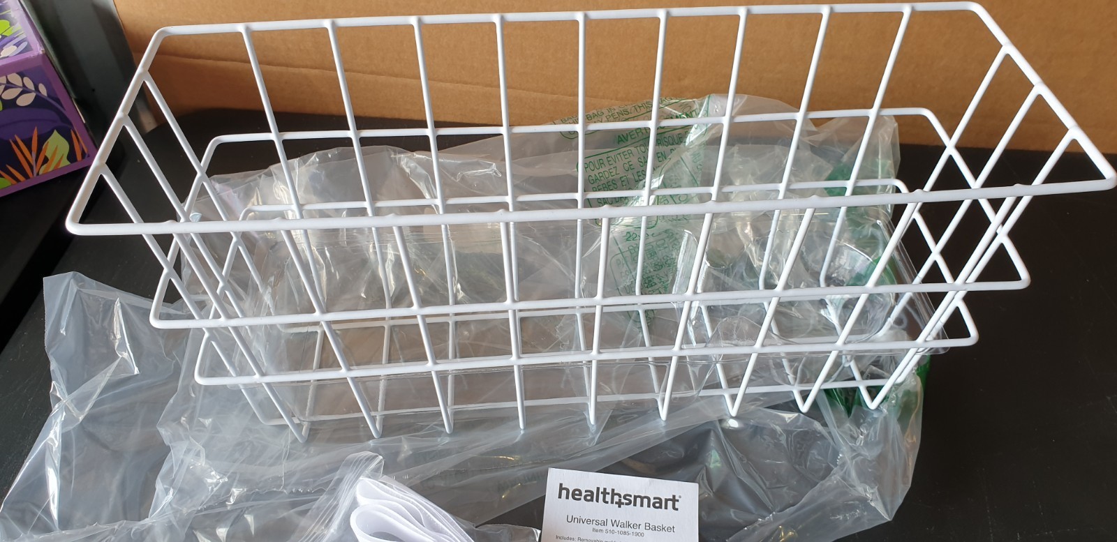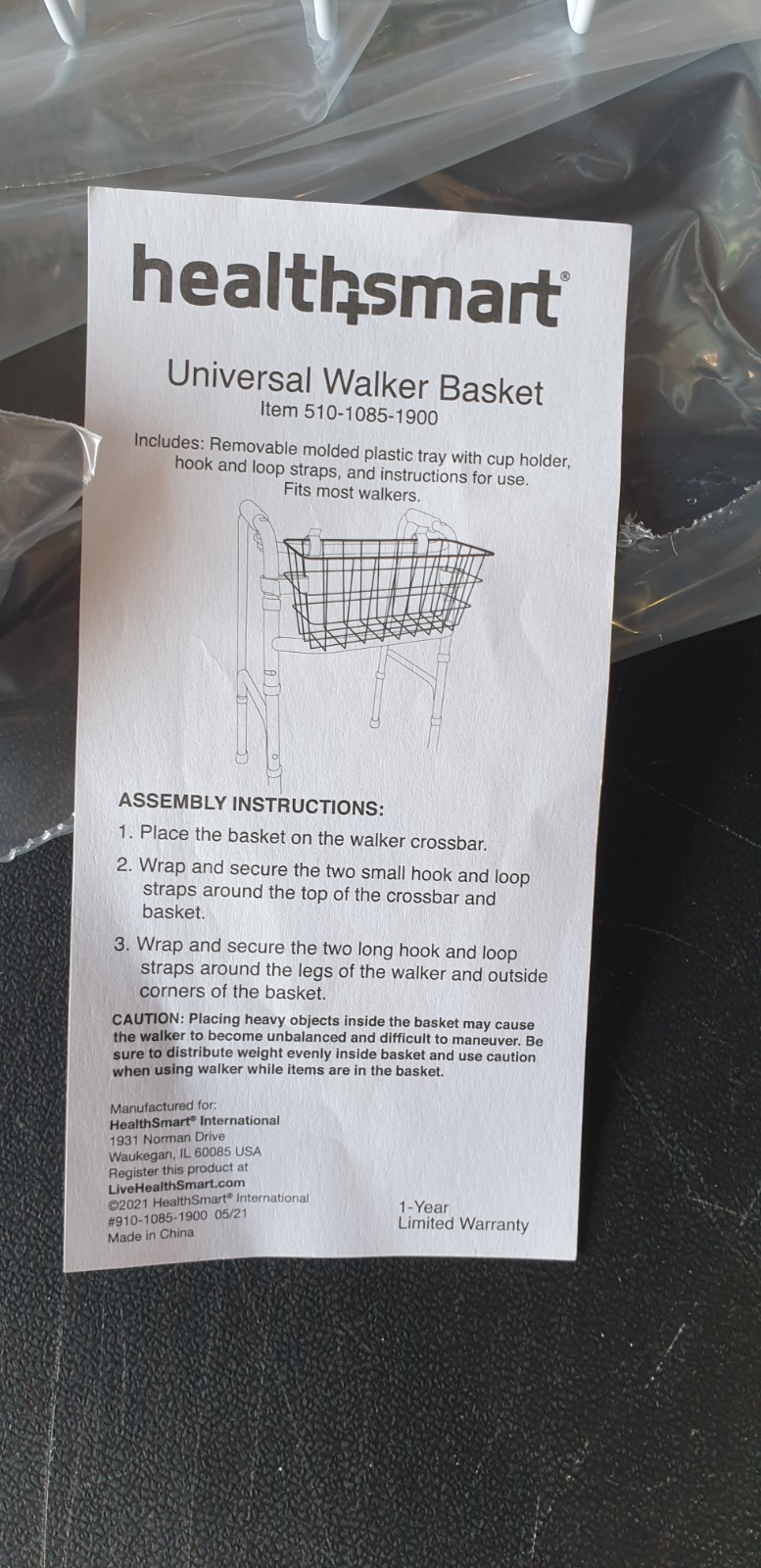 HealthSmart 510-1085-1900 Universal Walker Basket White Durable with Accessories.