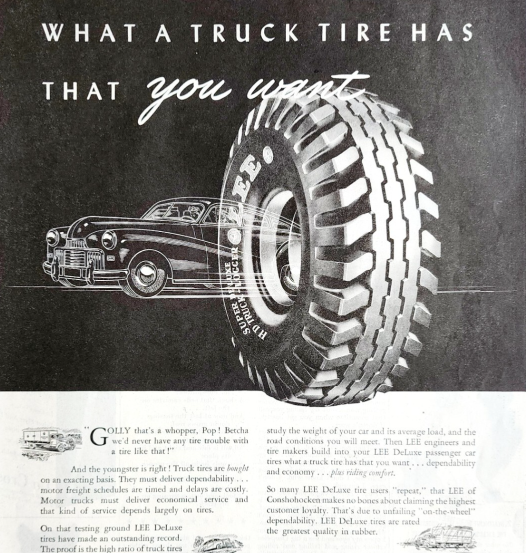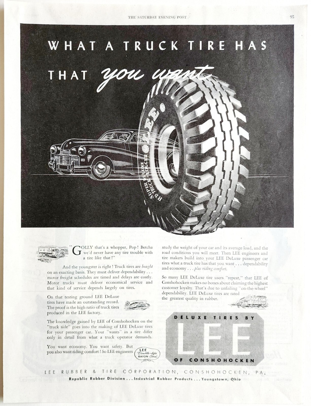 1947 Lee Tires Advertisement Conshohocken Pennsylvania Automobilia DWJJ23