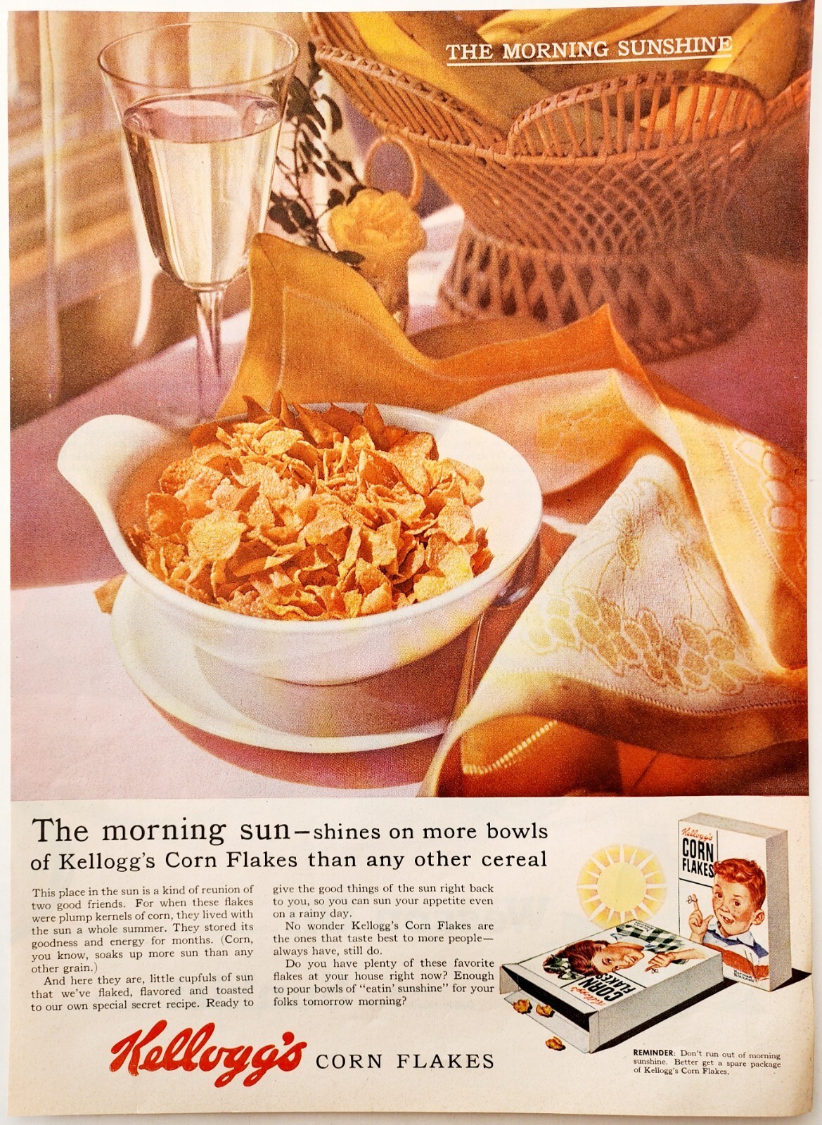 1956 Kellogg's Corn Flakes Cereal Advertisement Breakfast Foods Sunshine DWJJ11