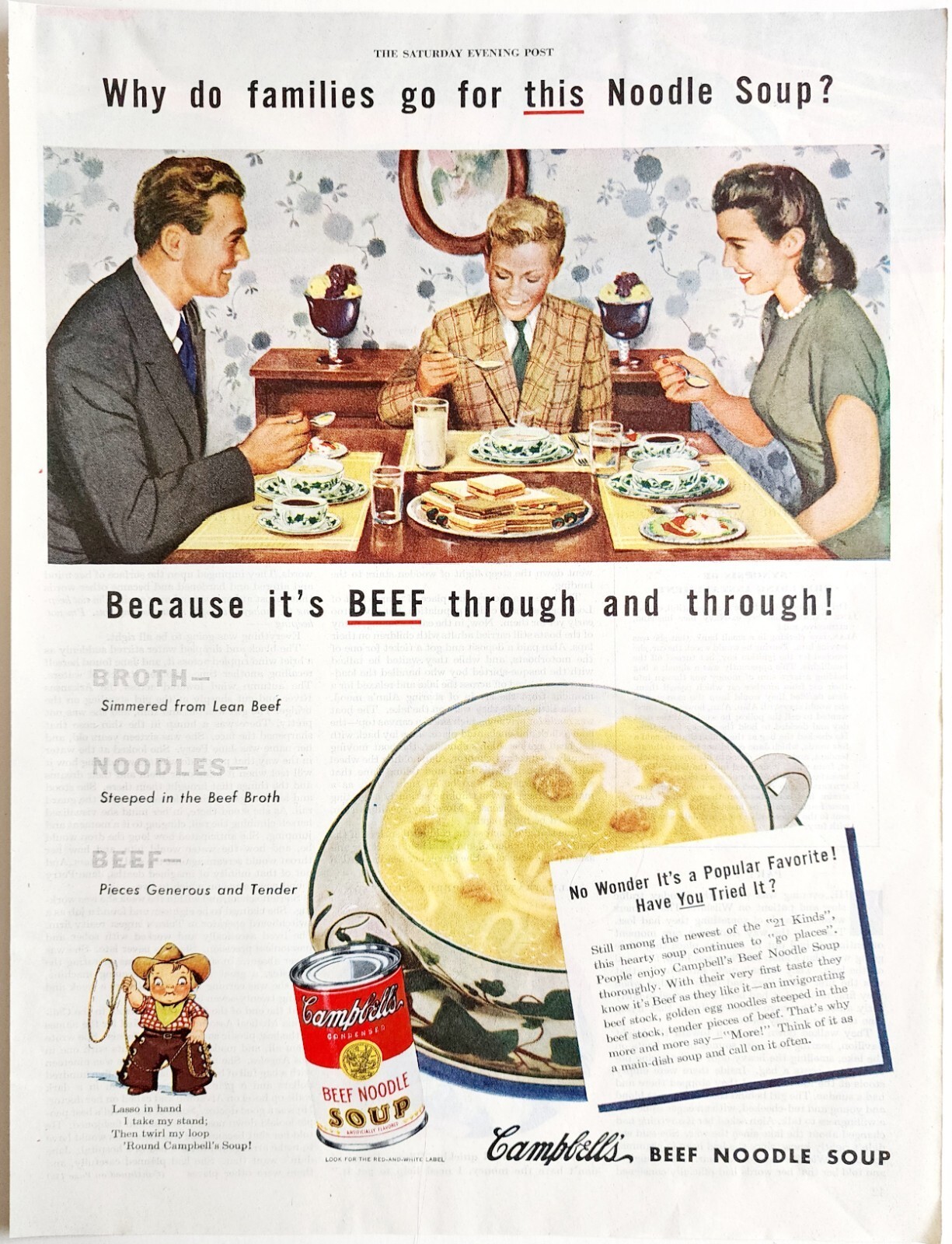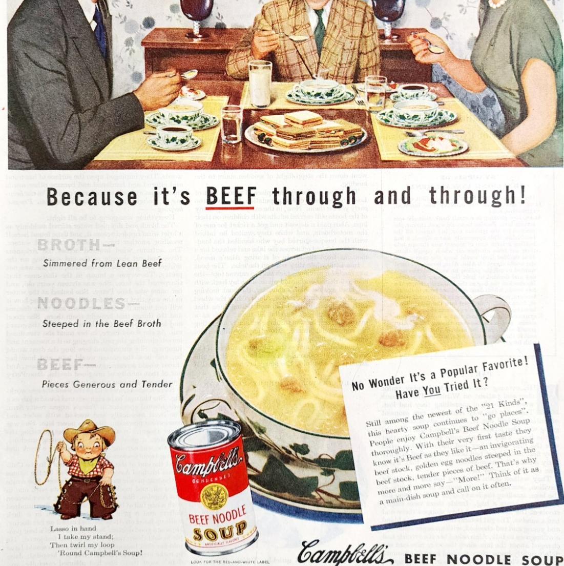 1947 Campbell's Beef Noodle Soup Advertisement Canned Classic Food DWJJ23