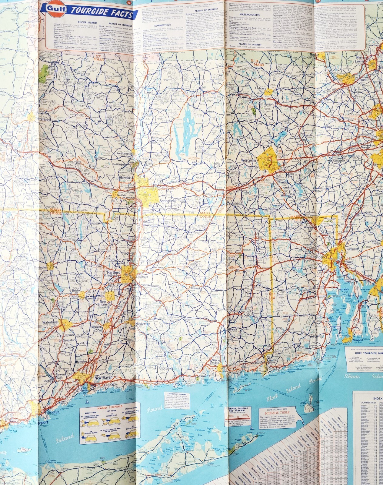 1965 Gulf Tourgide Map New England Roads Highways Folding Vintage 25.5 x 32" F10