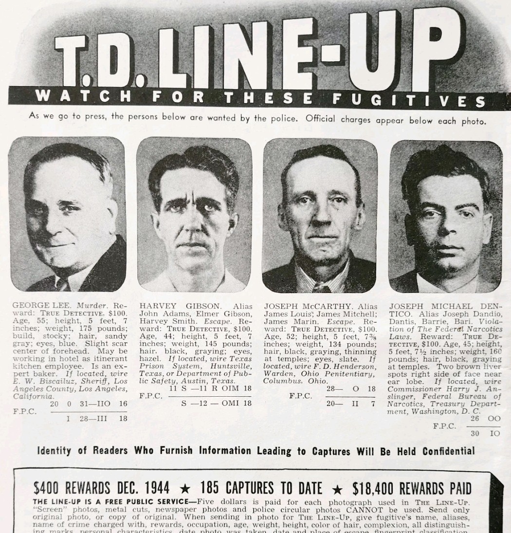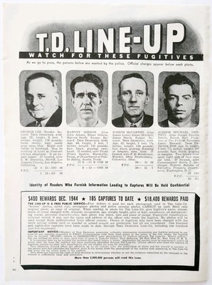 1944 Wanted Fugitives Line Up Advertisement Criminals True Detective DWA20