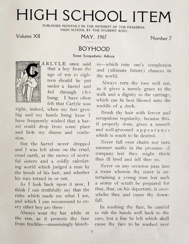 1907 The Item Pasadena High School Monthly Publication PB Booklet California A2