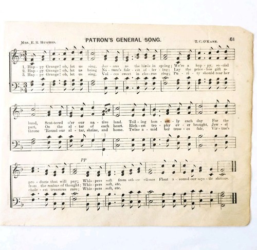 From the 1881 first edition Glad Echoes from the Grange song book published by the Ohio State Grange Fraternal Organization