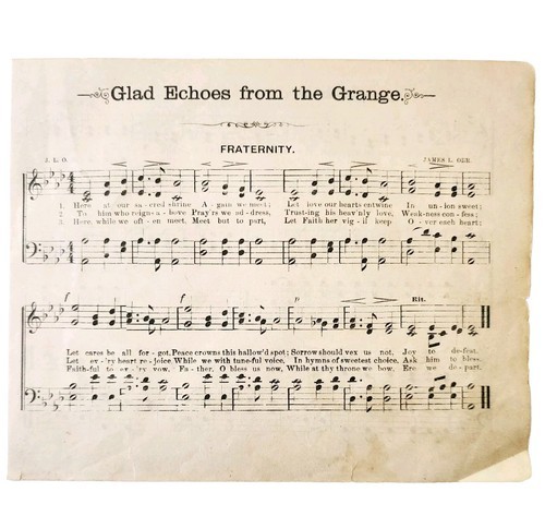 From the 1881 first edition Glad Echoes from the Grange song book published by the Ohio State Grange Fraternal Organization