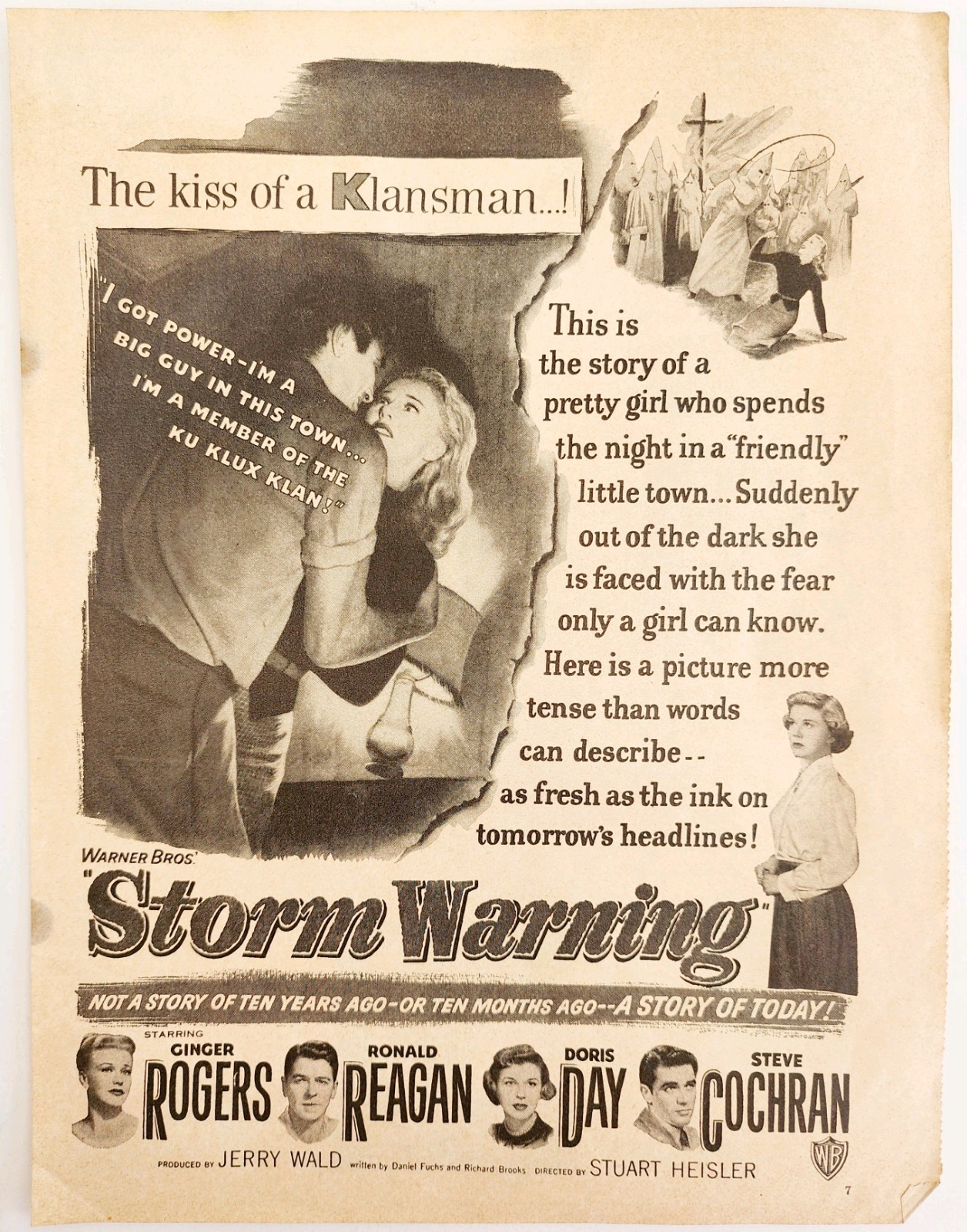 1951 Storm Warning Ronald Reagan Movie Advertisement Ku Klux Klan KKK DWY12
