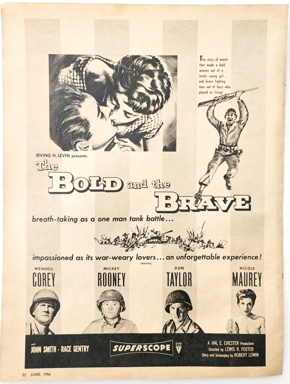 1956 The Bold & The Brave Movie Advertisement Wendell Corey Mickey Rooney DWQQ8
