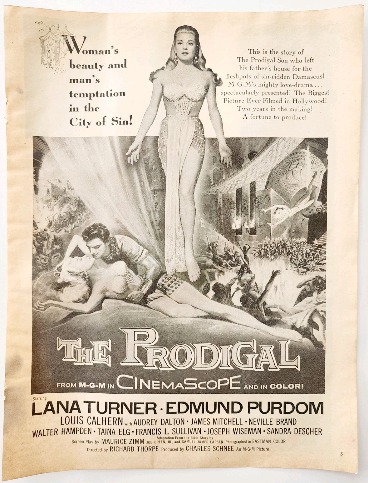 1955 The Prodigal Movie Film Advertisement Lana Turner Edmund Purdom DWQQ7