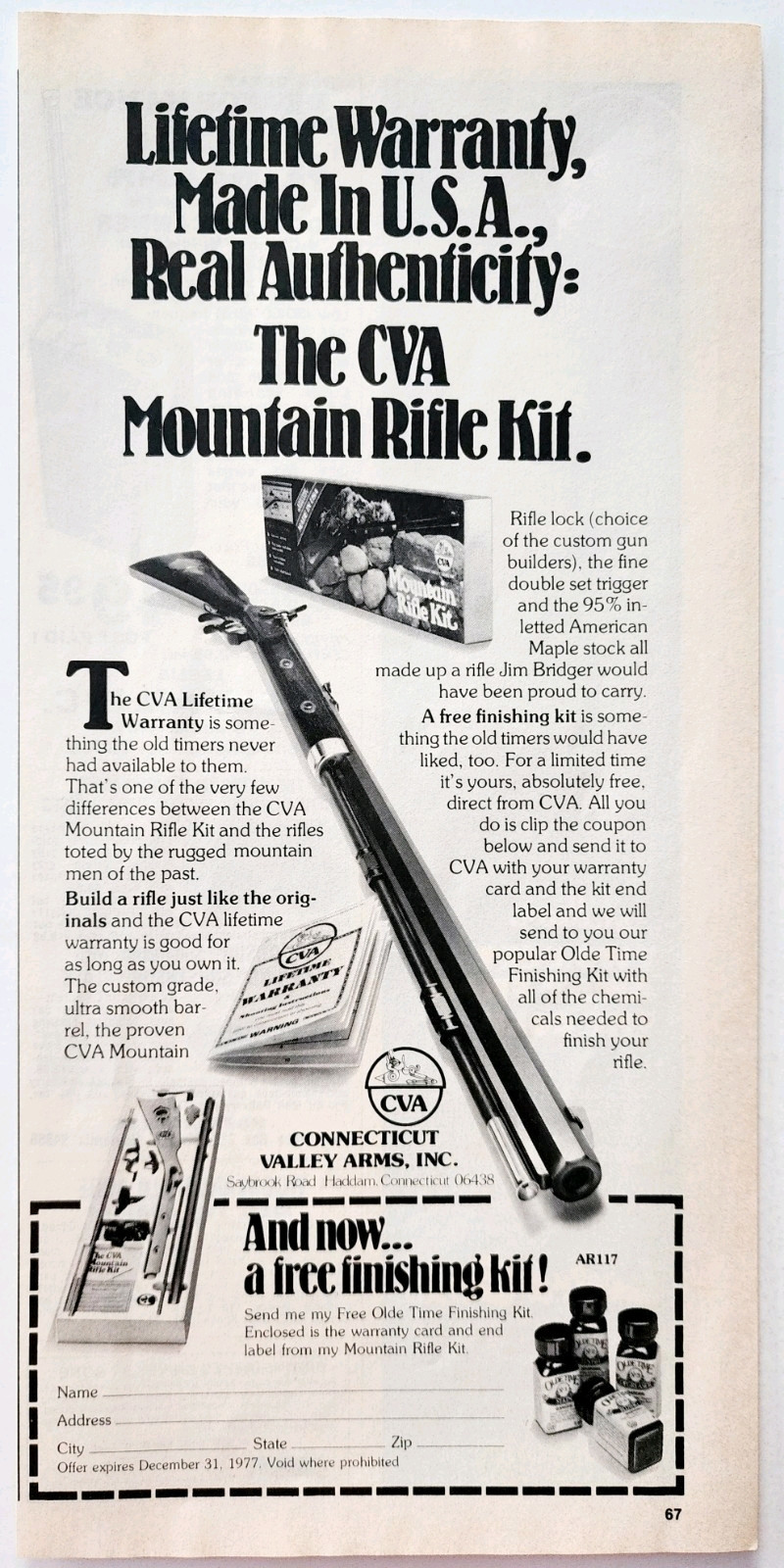 1977 Connecticut Valley Arms Rifle Kit Advertisement Hunting Firearms DWQQ4