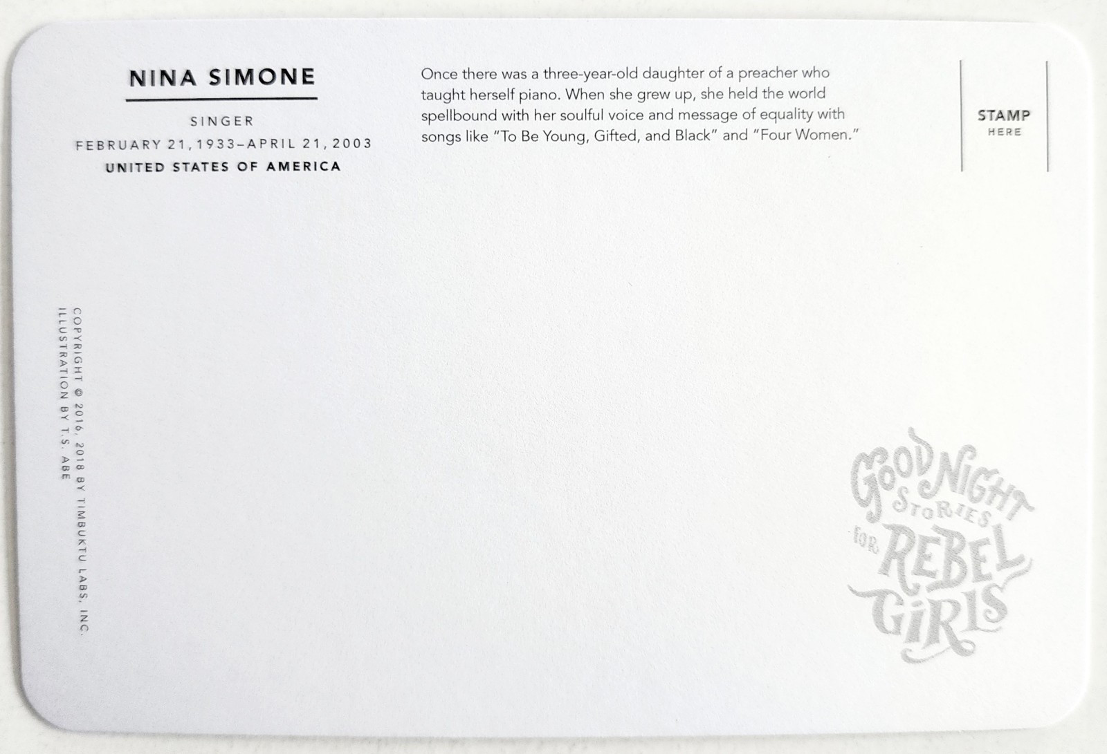 Nina Simone Art Postcard Jazz Blues Singer 2018 Female Pioneer Unposted F1A